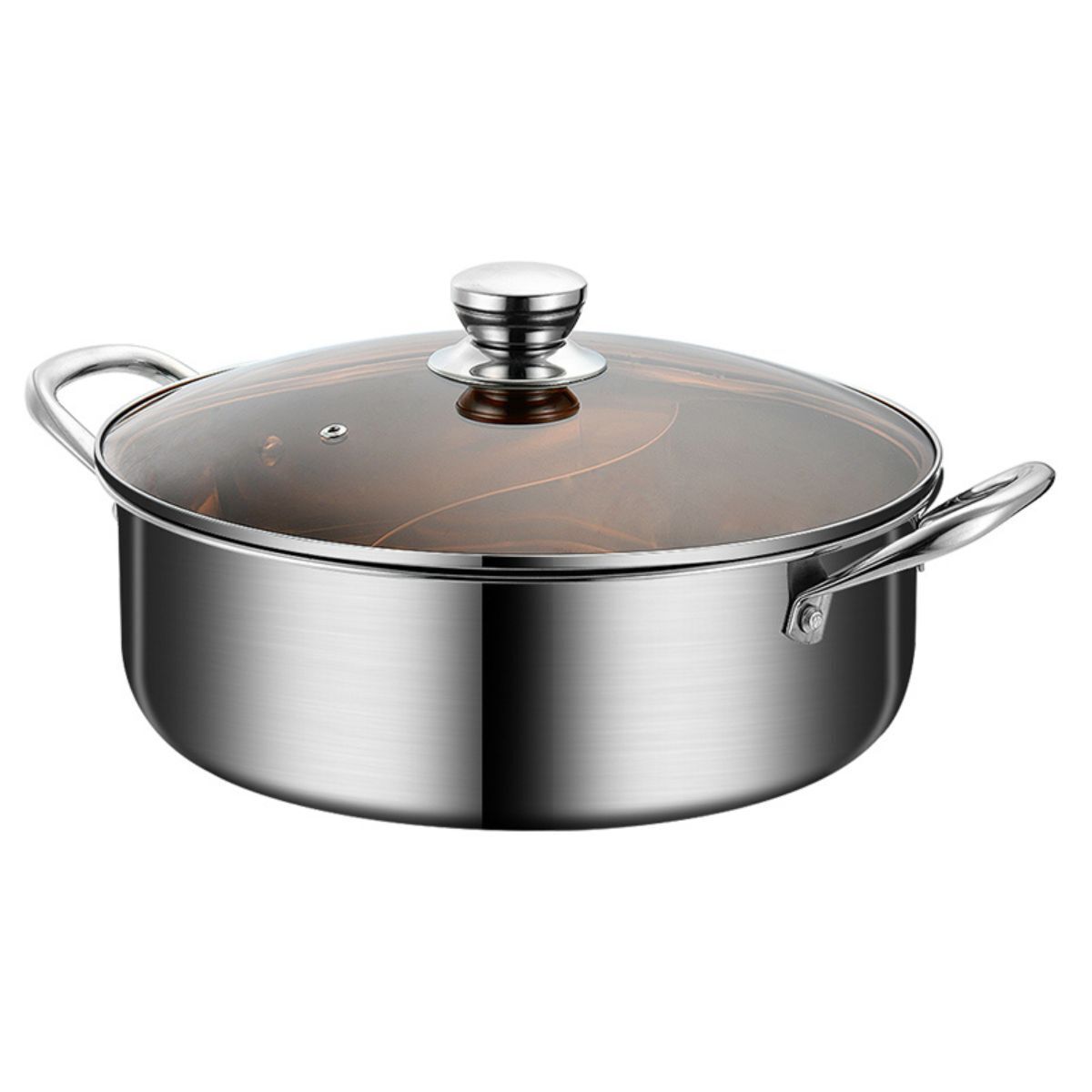 Versatile stainless steel hotpot with splitter, heat-resistant handles, and stove compatibility for delightful dining.