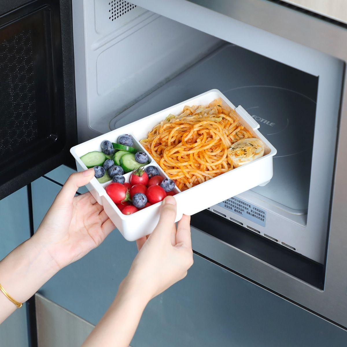 Designed for modern convenience, the bento box is both microwave and dishwasher safe, allowing for easy reheating and cleaning. Moreover, it's freezer safe, providing storage flexibility for your meals. Embrace a novel approach to lunchtime with this creatively designed bento box that combines style, functionality, and safety. Embrace a novel approach to lunchtime with this creatively designed bento box that combines style, functionality, and safety.