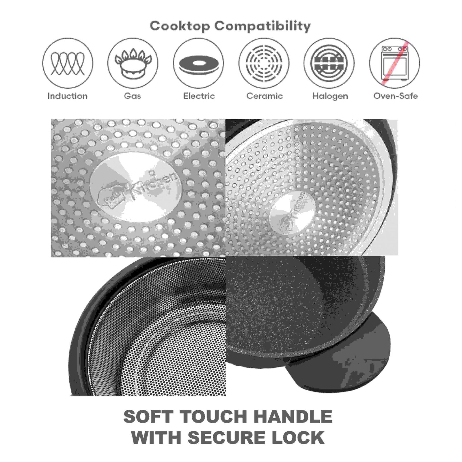 - Utilizes premium non-stick marble stone coating with effortless food release and easy clean up also 100% PTFE and PFOA free. You don't have to put an extra effort in its cleaning.