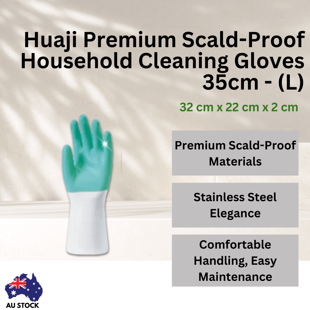 Experience the pinnacle of household efficiency with the Huaji Premium Scald-Proof Household Cleaning Gloves - 35cm (L). Meticulously designed to enhance your cleaning routine, these gloves combine high-end scald-proof materials with superior comfort and durability. The exterior features top-grade materials that are scald-proof, waterproof, and oil-resistant, ensuring a comfortable and durable experience. The selected lining material is soft and easy to wear, providing a gentle touch while reducing the risk of hand dermatitis. With scalloped cuffs and a design free from phthalates like DOP and DBP, these gloves are perfect for daily chores such as laundry, vegetable washing, home cooking, cleaning, seafood handling, gardening, and car washing. Effortless to clean and maintain, they ensure convenience without compromising on quality.