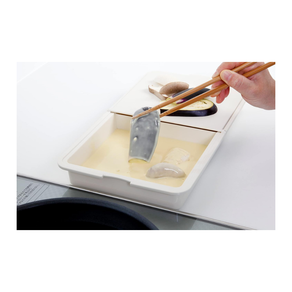 The Ihara Kihan Natural Cut & Tray - Ivory is a convenient cutting board with a tray that allows you to use your kitchen space effectively. You can place cut ingredients on the tray and carry them around. A colander is on one side, so you can drain food that has been dropped into the colander. The cutting board, bowl, and colander are integrated, making it perfect for everyday use in the kitchen.