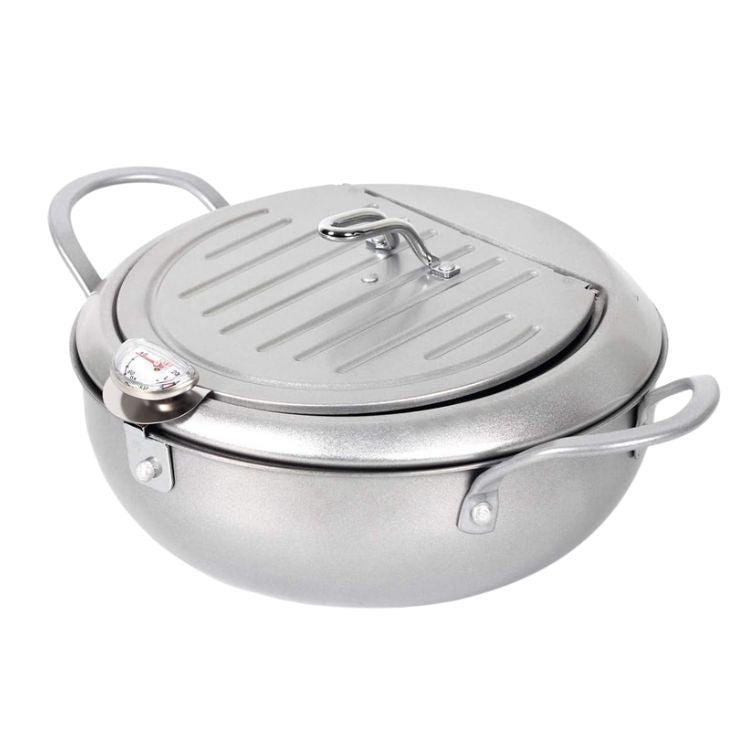 Justcook Kitchen Deep Fryer with a Lid is made of iron with an uncoated surface, it is more healthy and safe. There is a detachable oil drainage rack inside the lid and a deep stainless steel fry thermometer, it is easy for draining and keep oil fall in the pot and convenient to watch and real-time control the oil temperature. This versatile deep fryer pot is ideal for everyday use, offering both functionality and safety for home cooking.