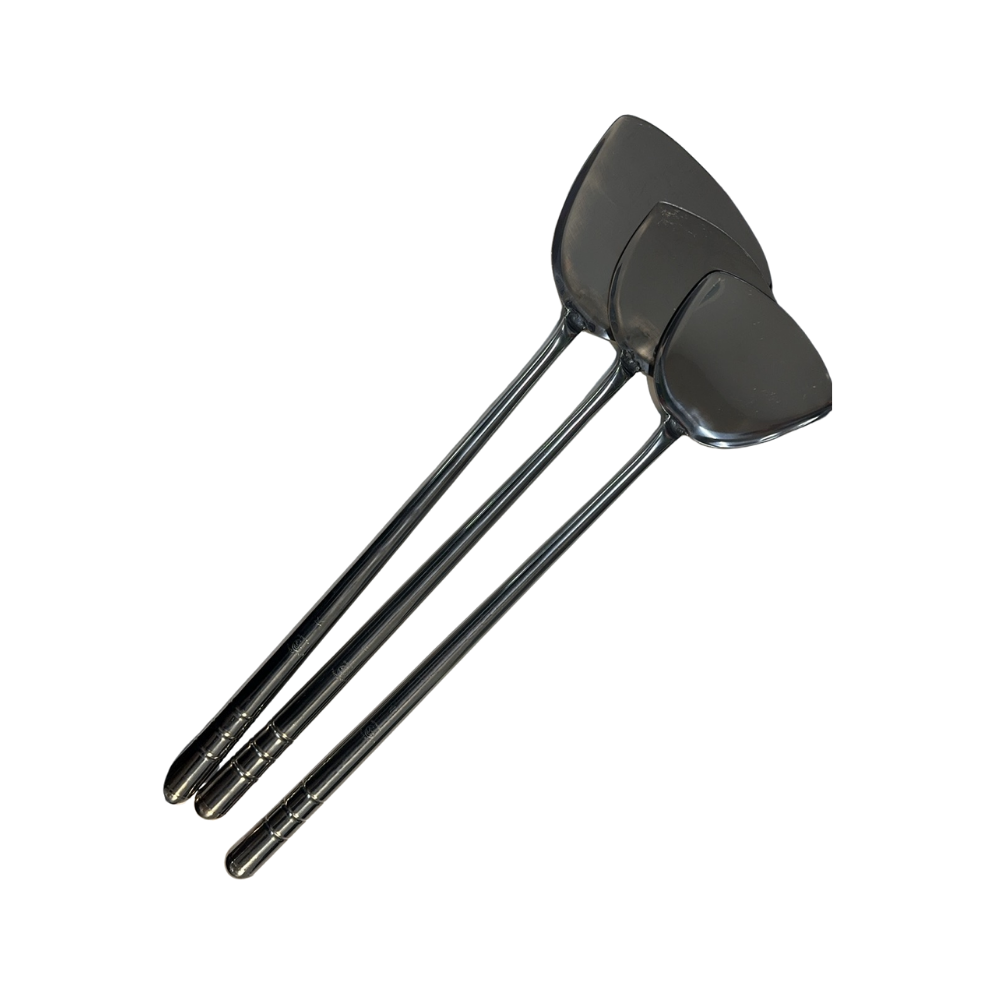 The 18-0 Integrated Handle Pipe Chinese Spatula Large is a well-crafted and versatile kitchen tool designed to meet the demands of various cooking techniques, particularly in Chinese cuisine. Known for its durability, ergonomic design, and high-quality construction, this spatula is ideal for stir-frying, flipping, and serving as well as the selective sizes (small, medium, large).