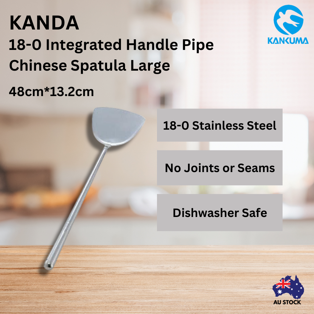 Kanda 18-0 Integrated Handle Pipe Chinese Spatula Large