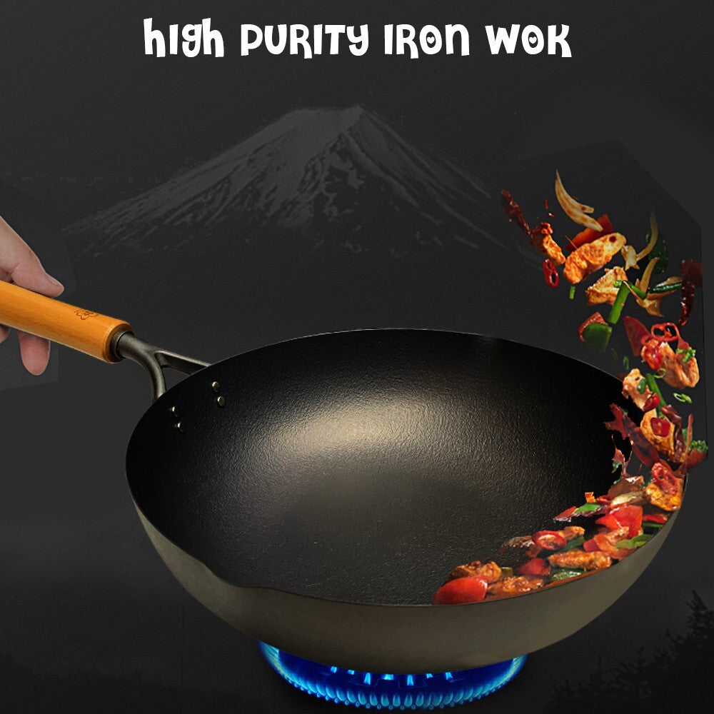 Kirameki Pure Iron Double Fiber Line Stir Fry Wok Made In Japan