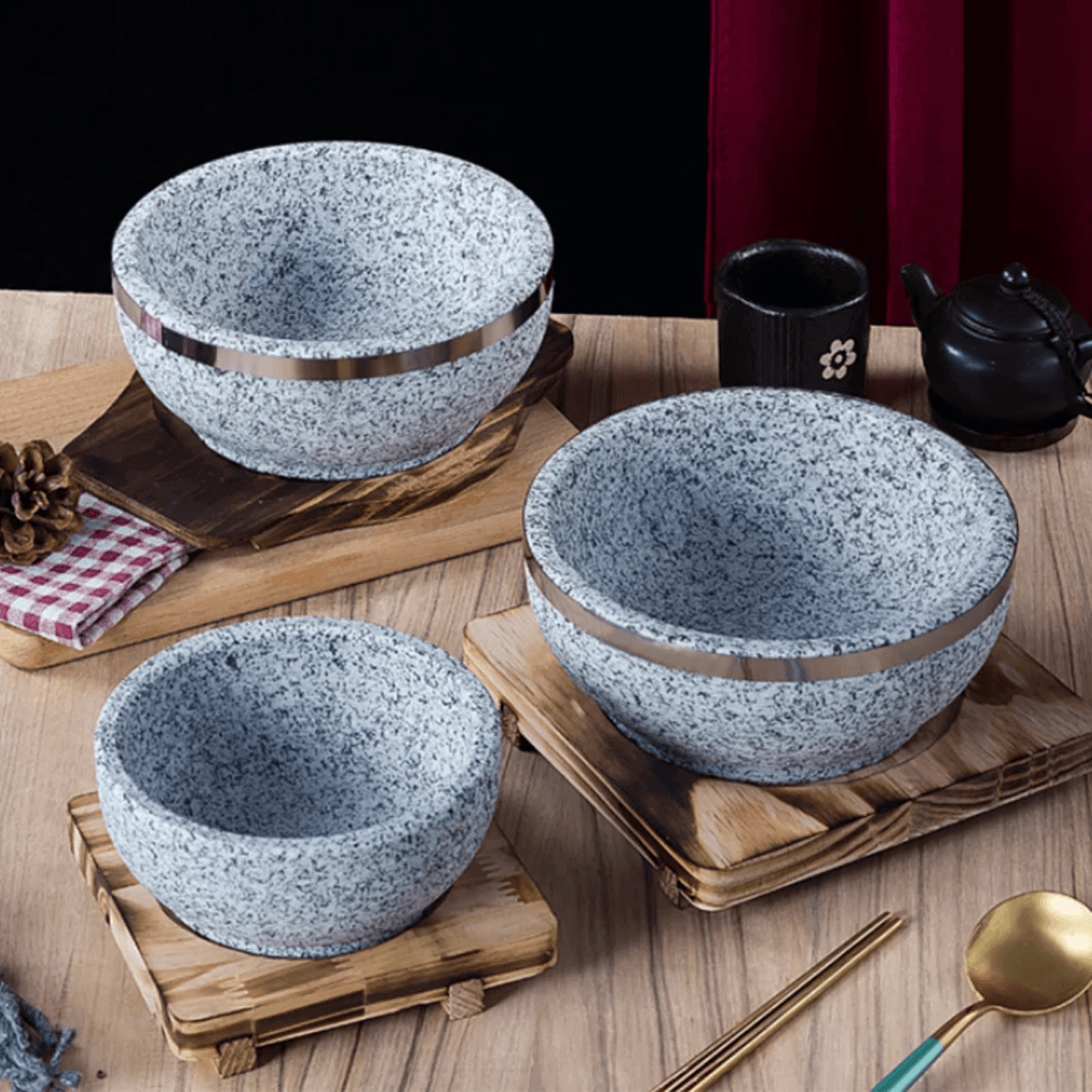 Stone Bowl: insulated, stable, easy to clean, and resistant to high temperatures.