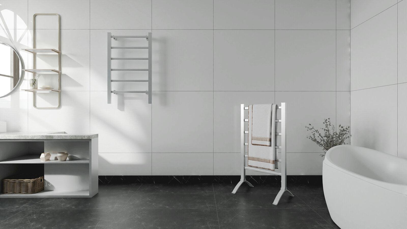 Kylin 2 In 1 Electric Towel Warmer heating up as fast as 3 minutes, warm your towel or clothing at any time. It can work as a free-standing rack or hanging on the wall, easy to install. Just plug it in and it will be ready to use. It is made of anti-corrosion aluminium and its switch is in level IPX4 Water Resistance, no worries about installation in the bathroom. It is designed to stay constantly at 45- 55 degrees, giving you a warm, dry, and fluffy towel after each shower on a cold wintery day.