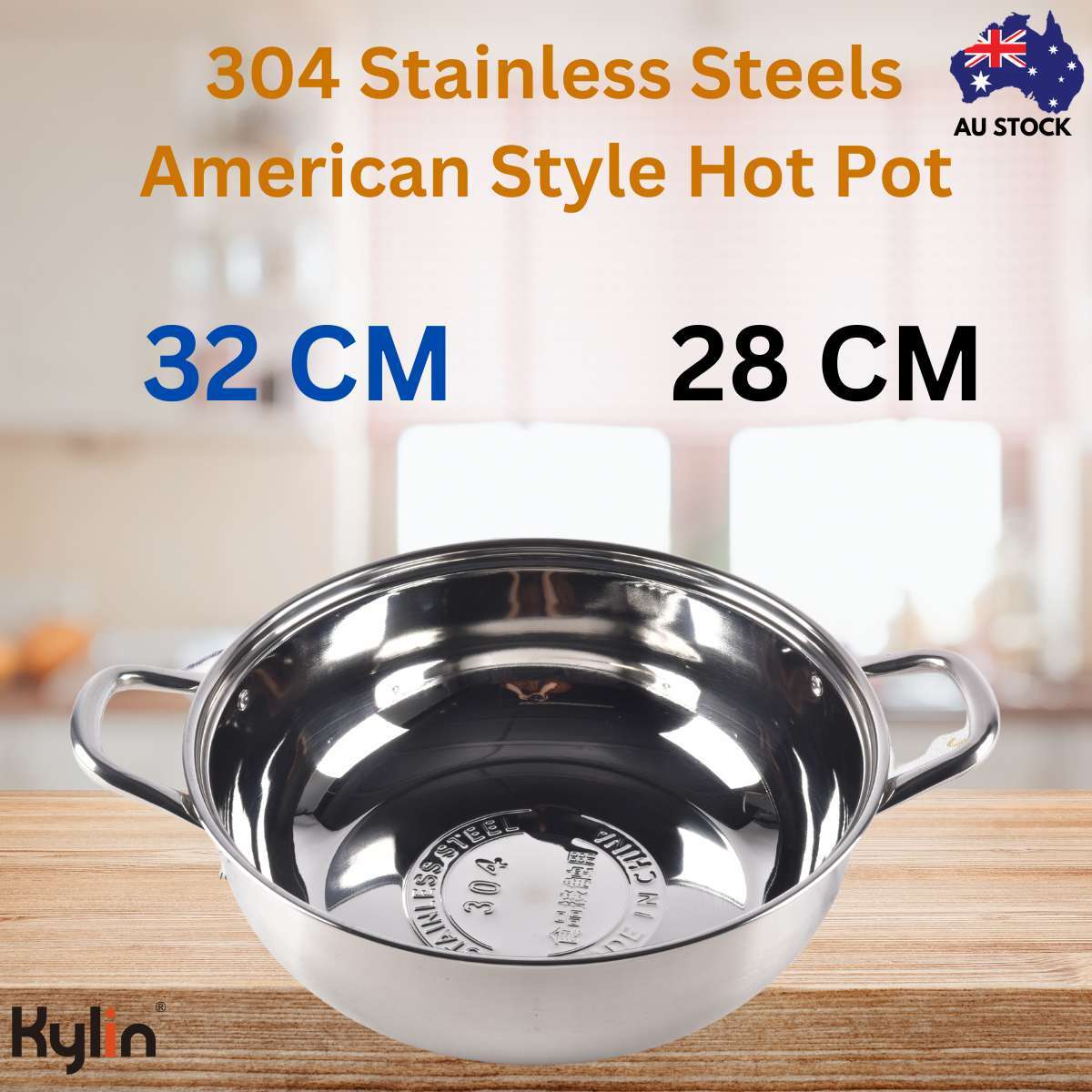 Kylin 304 Stainless Steels Shabu Single American Style Hot Pot, Cooking Pot 32cm