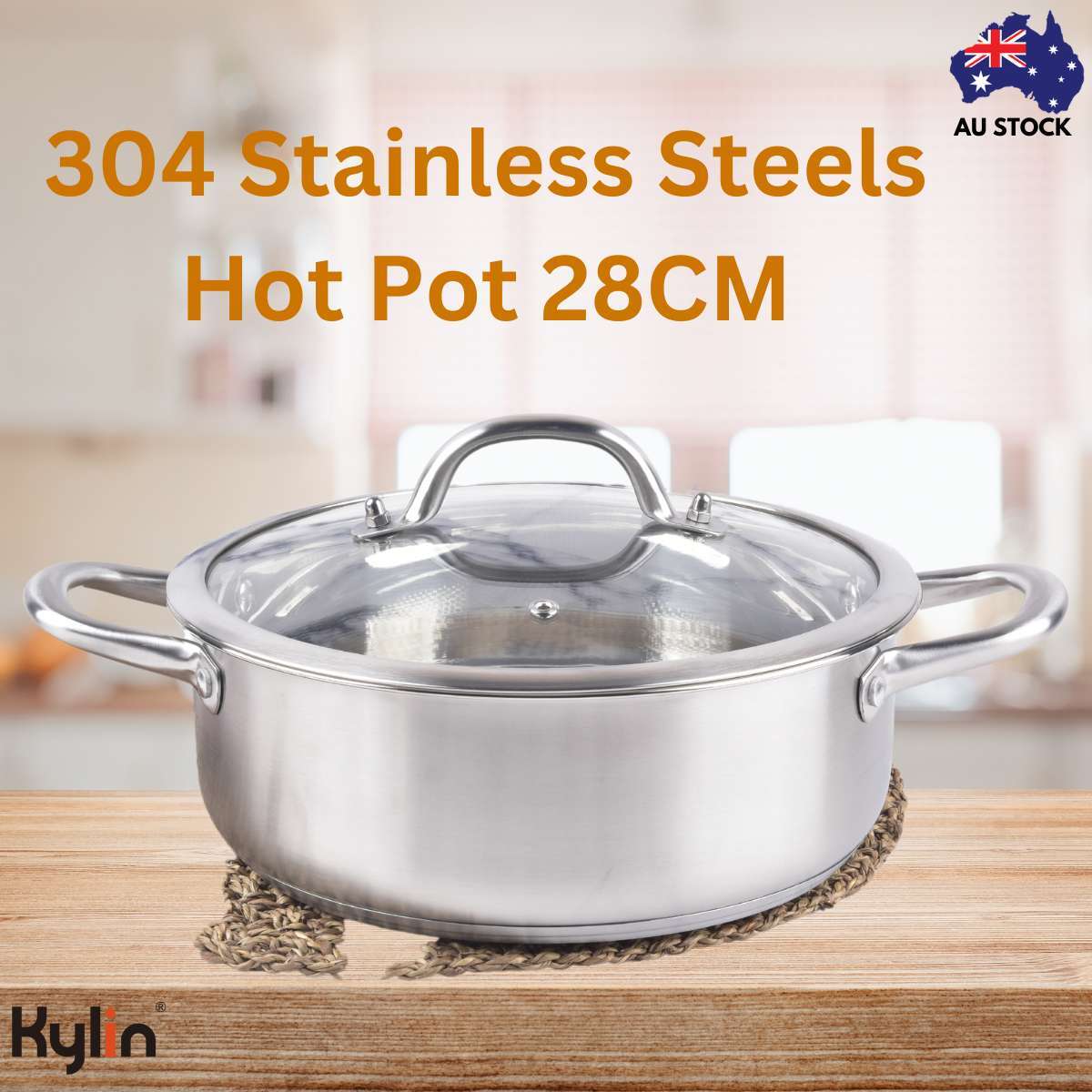 Kylin 304 Stainless Steels Shabu Single Hot Pot, Cooking Pot With Lid 28CM