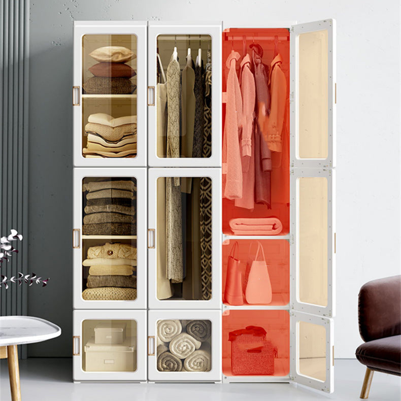 Kylin Cubes Storage Folding Cabinet Wardrobe with 8 Grids & 4 Doors & 1 Hanger