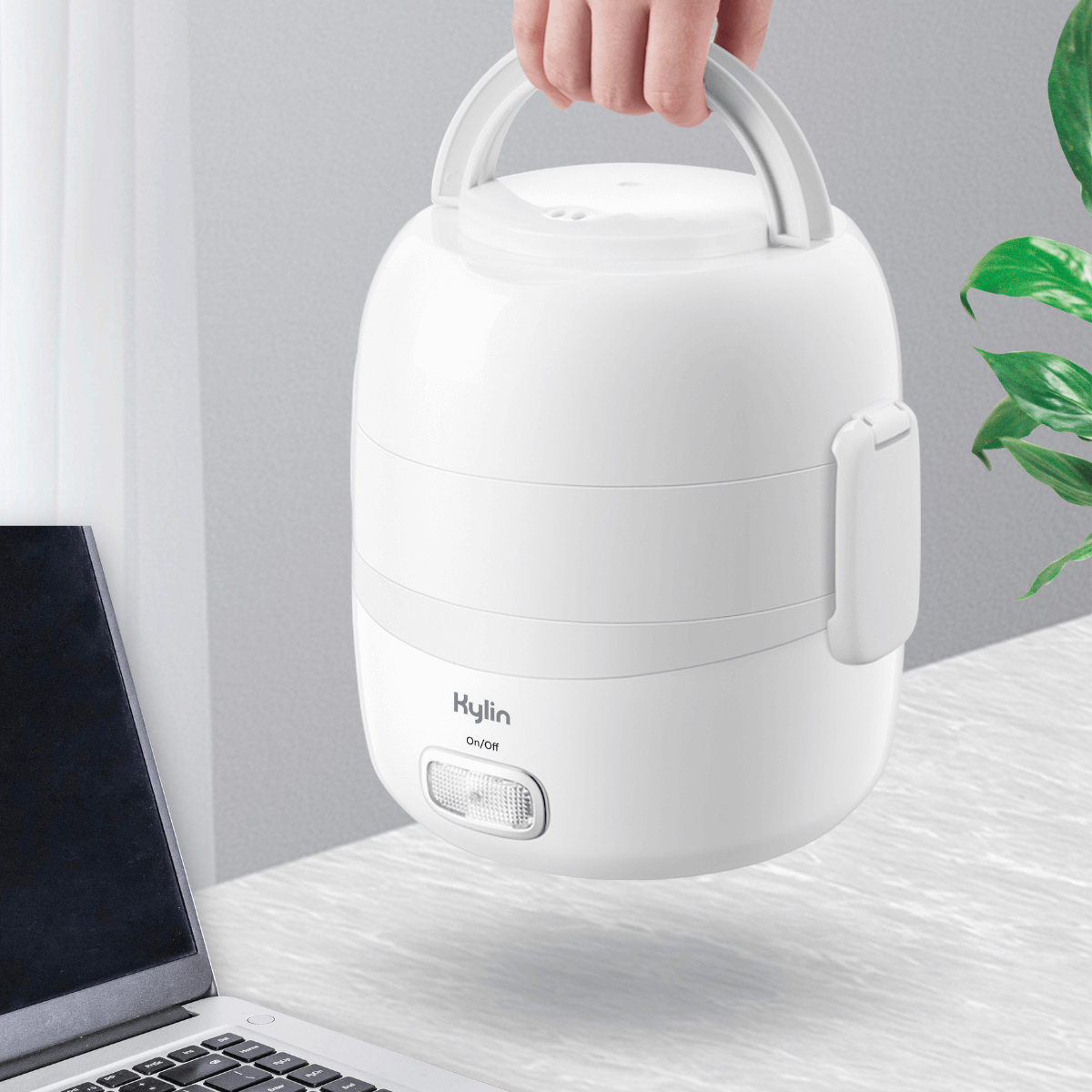 Kylin Electric Heated Lunch Box: Double-layered with egg steamer, stainless steel container, and portable lunch bag for convenient, ample-capacity meals.