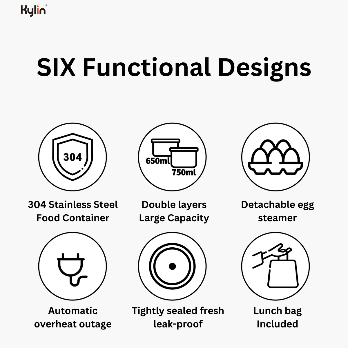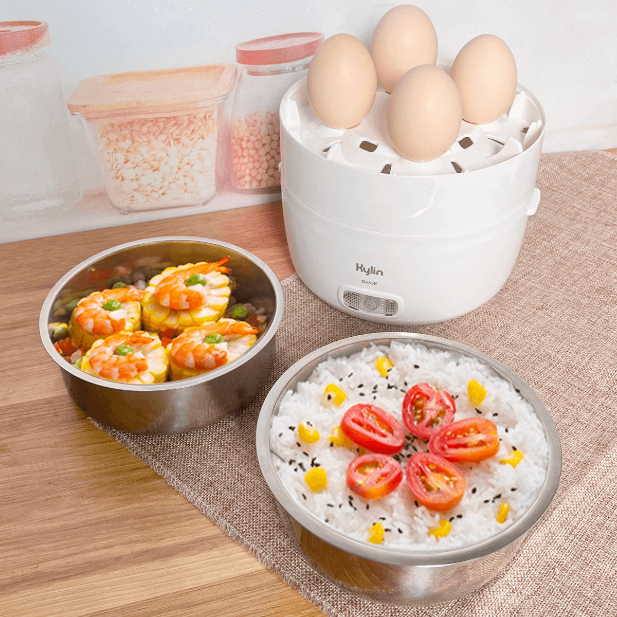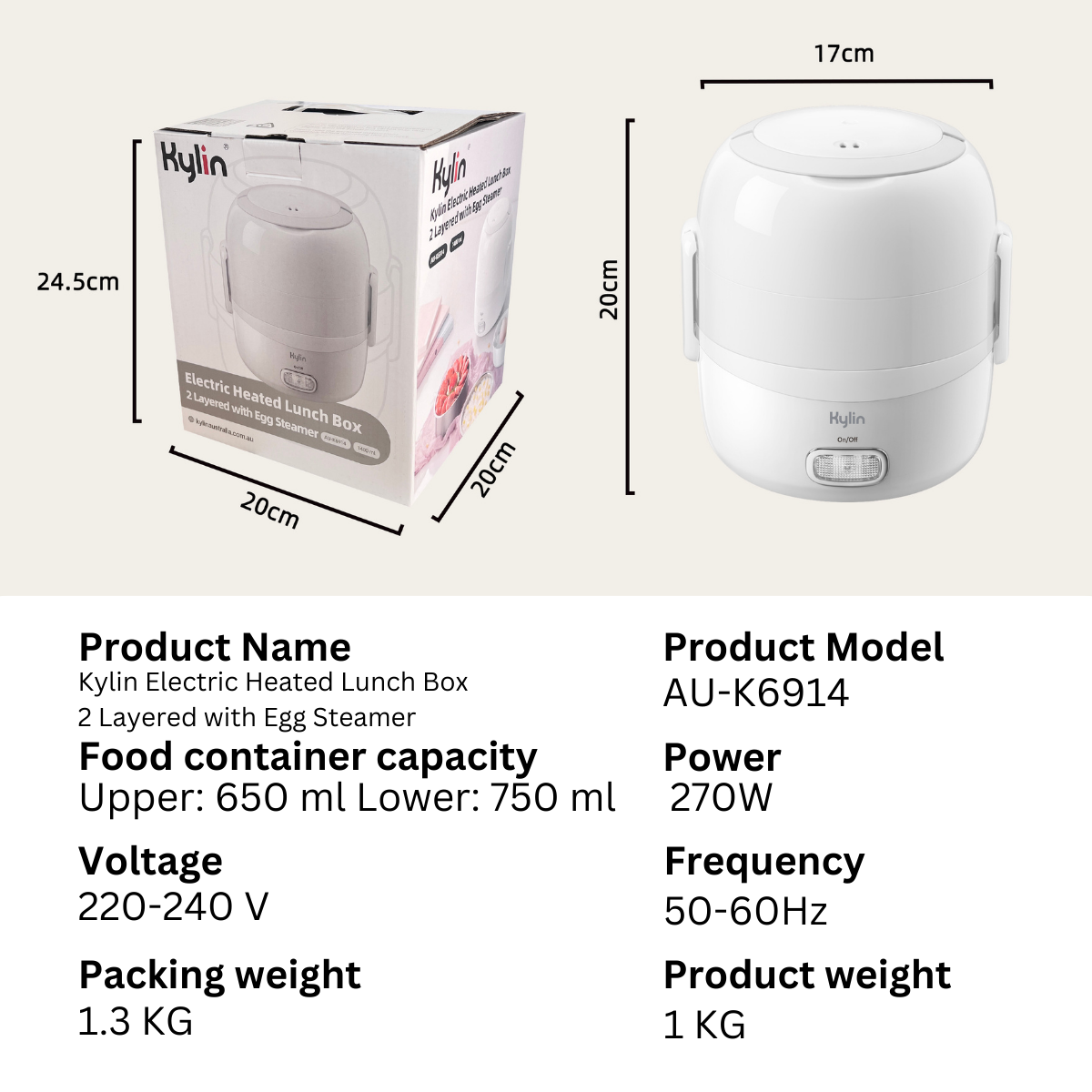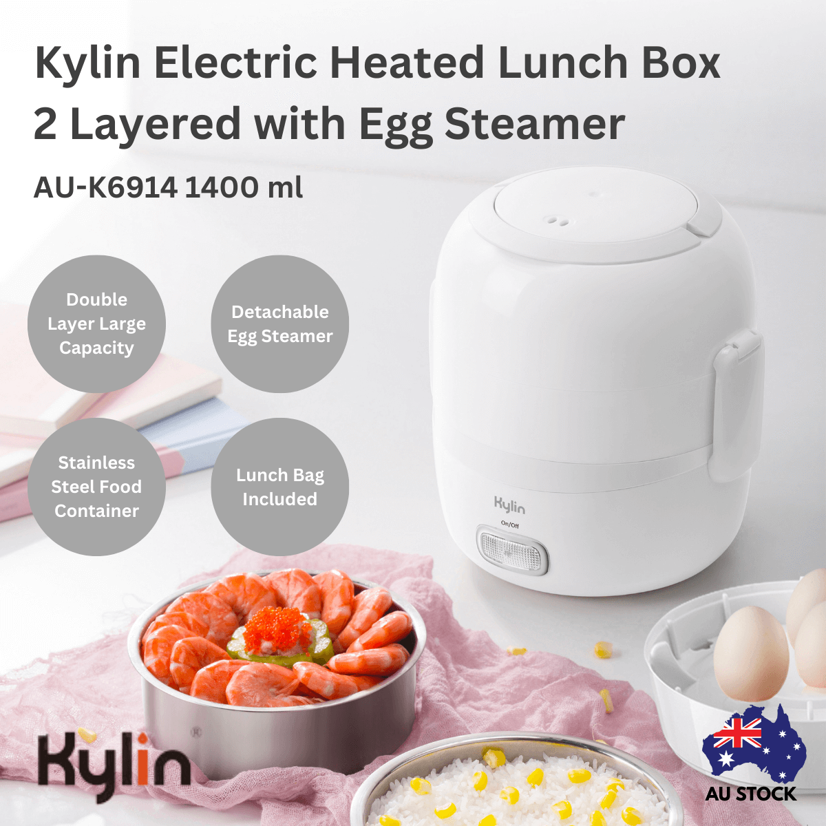 Kylin Electric Heated Lunch Box 2 Layered with Egg Steamer AU-K6914