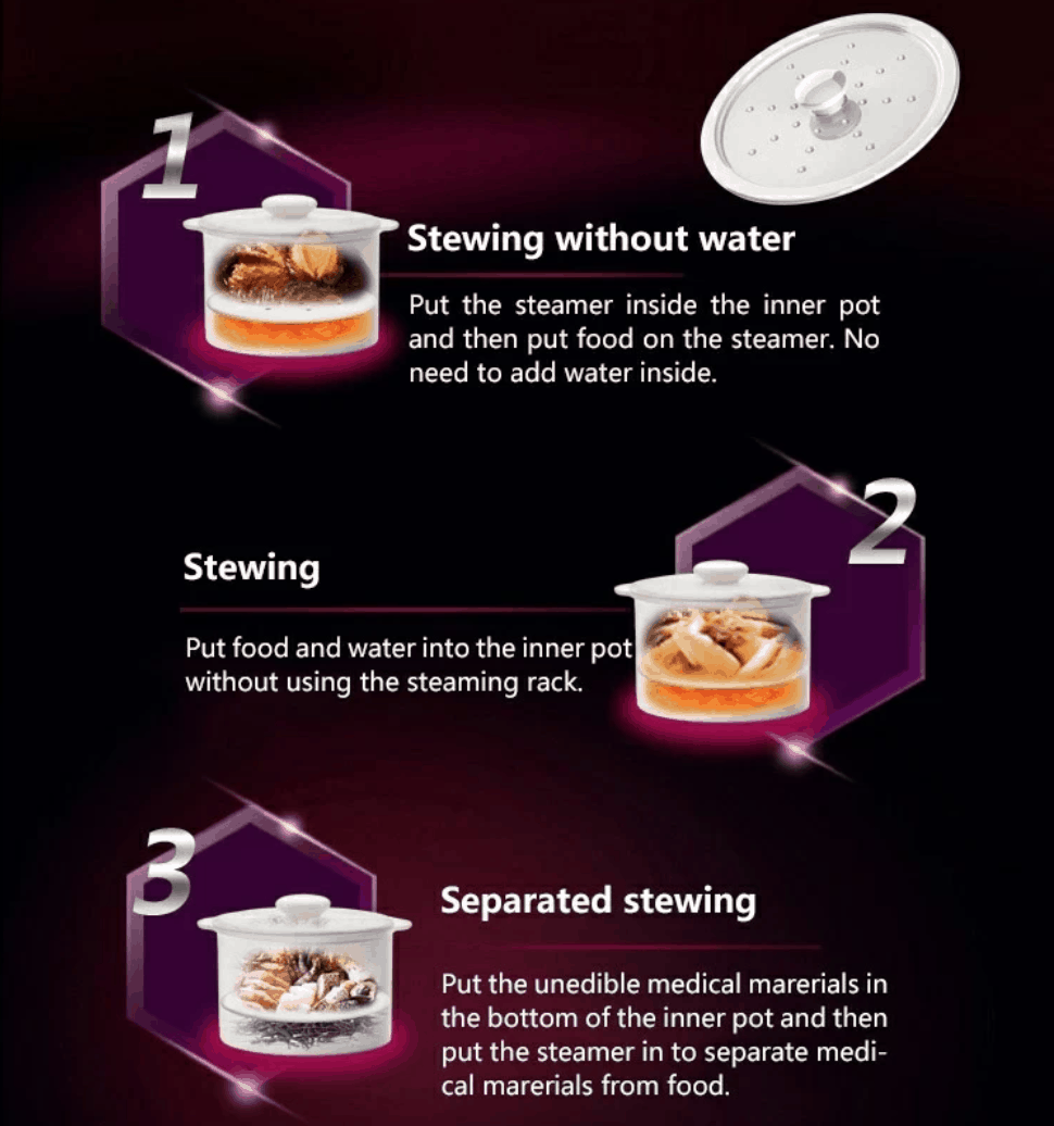 - One cooker with 4 ceramic inner pots, convenient for your cooking, guarantees healthy stewing as well as satisfy different tastes