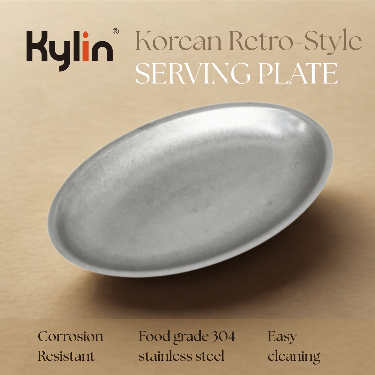 Kylin Korean Retro-Style 304 Stainless Steel Oval Serving Plate 30cm