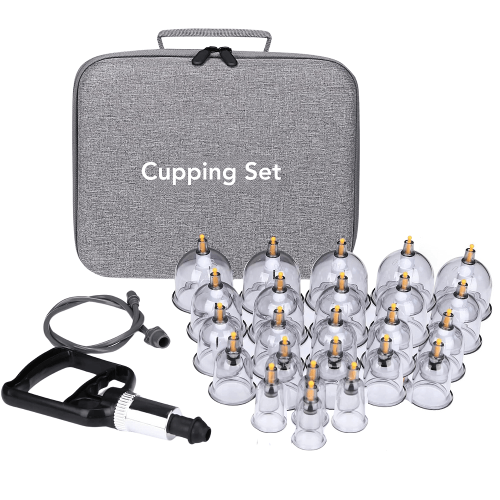 Professional 24-piece cupping therapy set with adjustable suction handles, designed to relieve muscle tension, improve circulation, and support overall wellness.