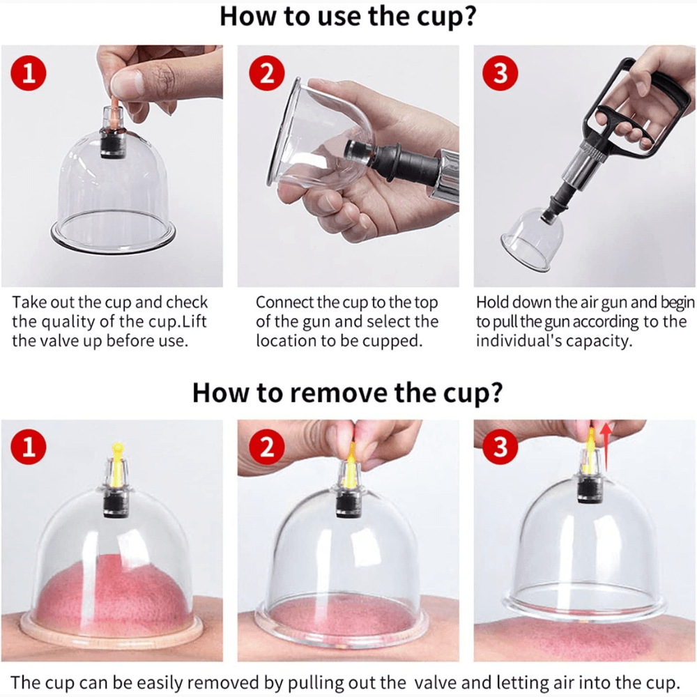 Each cup is equipped with a pumping handle for precise suction control, ensuring a safe and effective cupping experience. Whether you're aiming to relieve muscle tension, improve blood circulation, or promote relaxation, this set offers versatility for both beginners and experienced users.