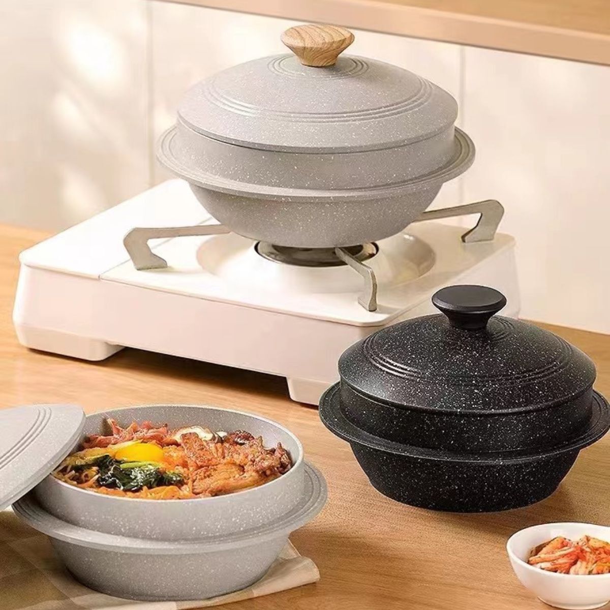 Authentic Korean-style cooking pot for Bibimbap and more, with even heat distribution and non-stick coating.