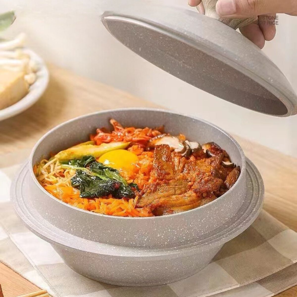 This stone pot is a culinary essential for fans of Korean cuisine. Crafted with precision, this pot is designed to prepare the iconic Bibimbap dish to perfection. Its durable construction ensures even heat distribution for uniform cooking results.