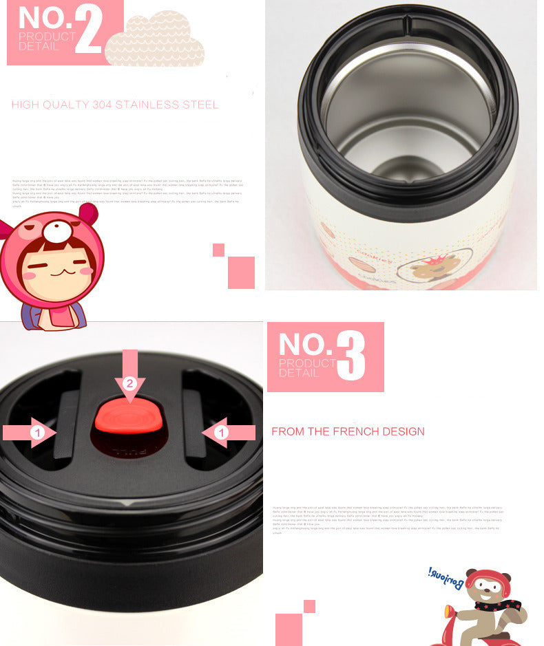 This Pinkah food jar is designed in France. The food thermos is made of high quality 304 stainless steel, which is safe and durable. The matt finish makes the thermos container comfortable to touch and it provides you with a slip-free grip. With this vacuum-insulated food jar, you can enjoy hot soup for lunch or fresh fruit for a snack, or other healthy homemade food in between meals. The food jar is leakproof and the small size is easy for your family to take out without worrying about spills
