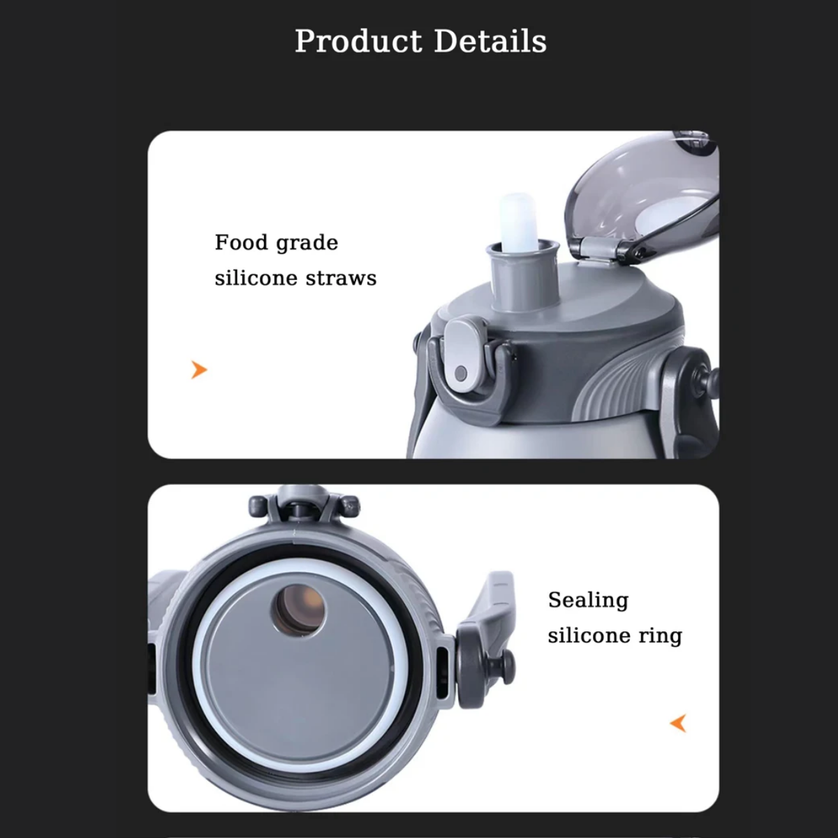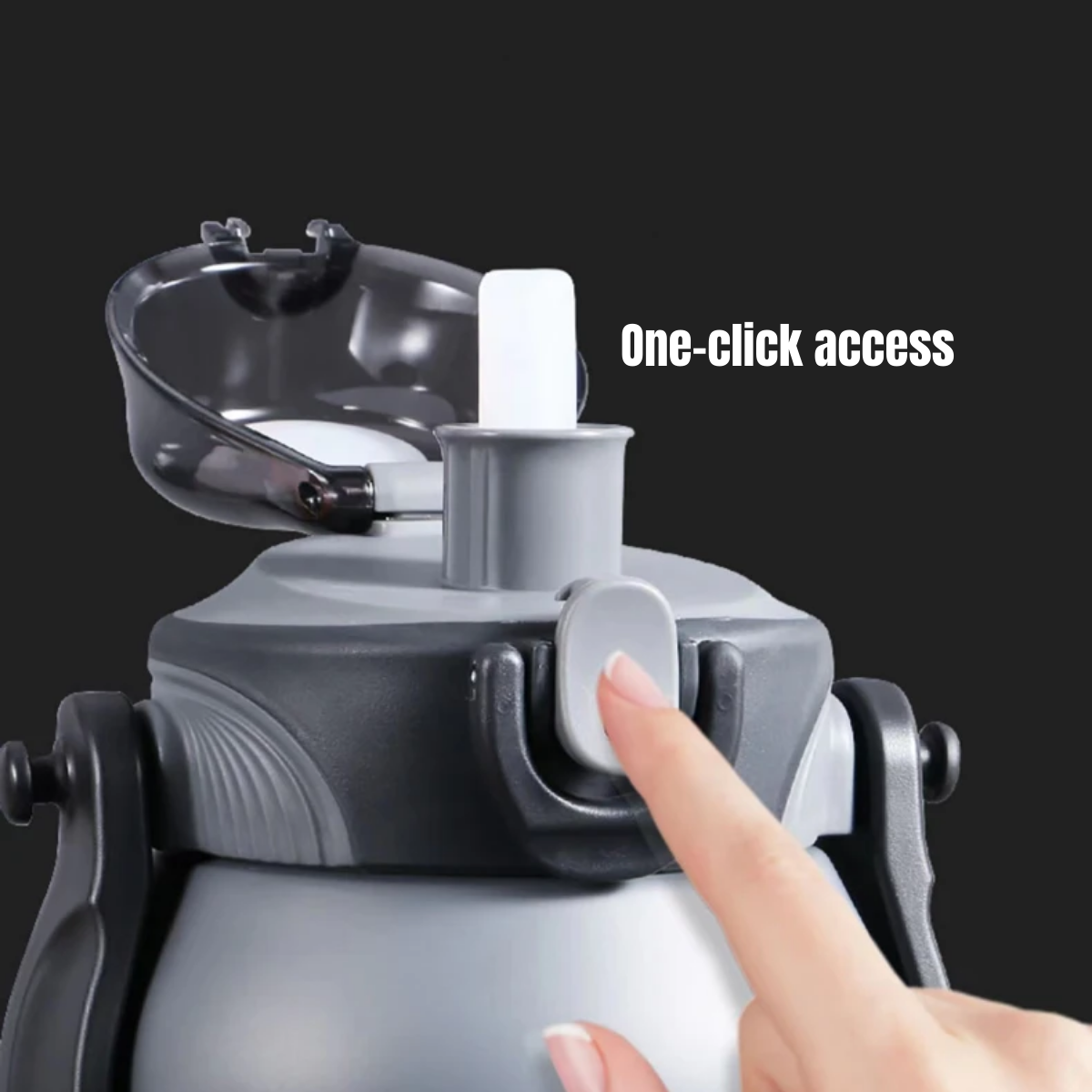 Pinkah PJ-3671 1.5L 316 S/S Sport Vacuum Bottle with Straw offers a large capacity and extreme temperature resistance. With a leak-proof design, one-touch opening, latch design, and portability, it's the perfect companion for staying hydrated on the go.