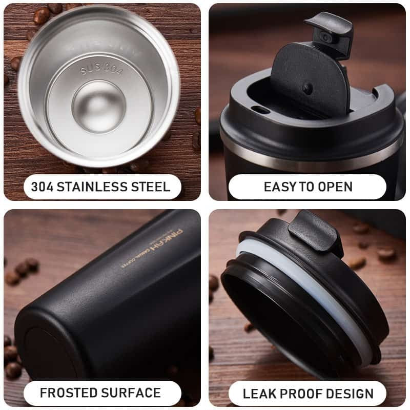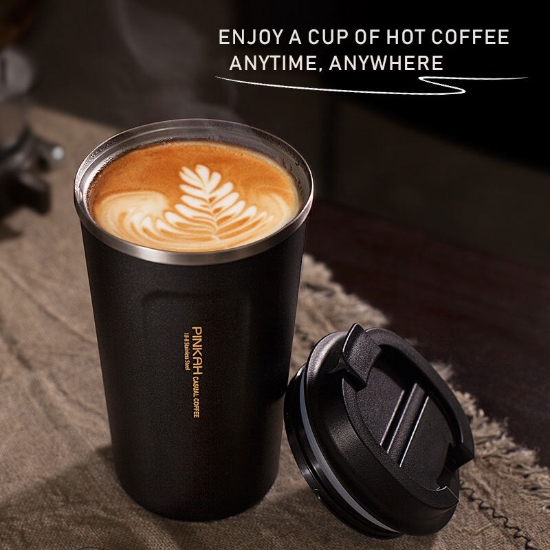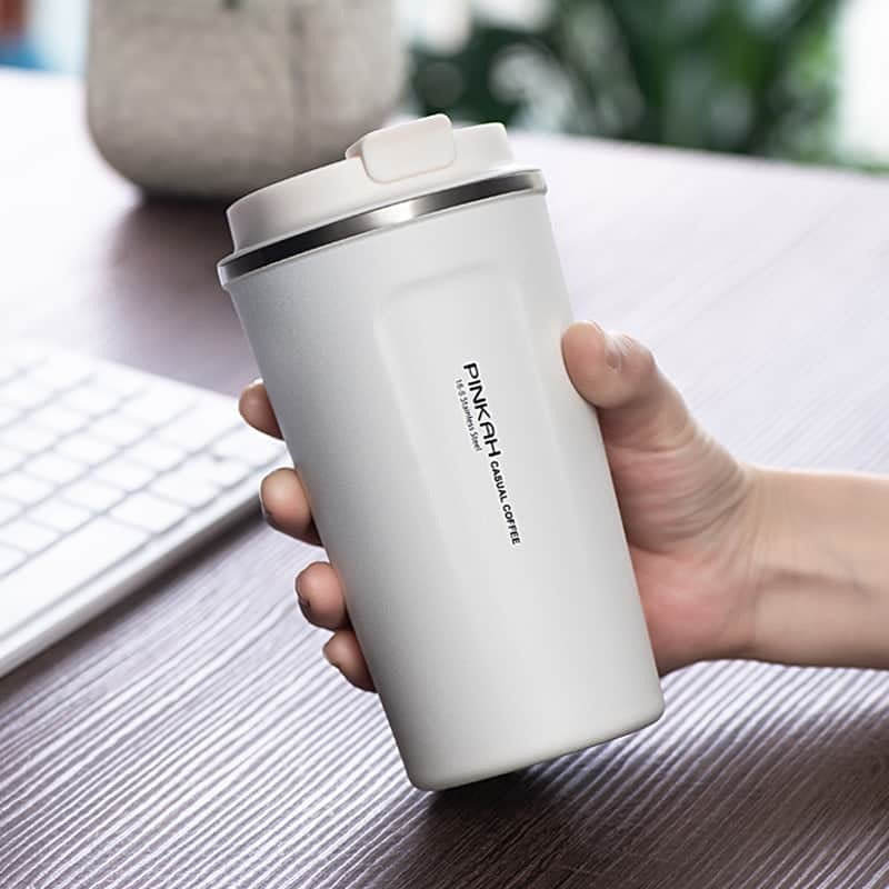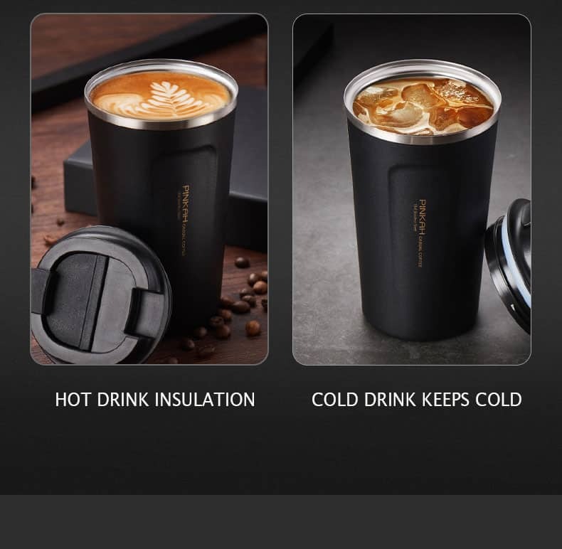 Keep Your Coffee Hot and Cold for Hours by using Pinkah Stainless Steel Thermos Cup Travel Coffee Mug. Vacuum insulated coffee mug for keeping hot drink warm for up to 6 hours and cold drinks stay cold for up to 8 hours, and feel energized for the day.