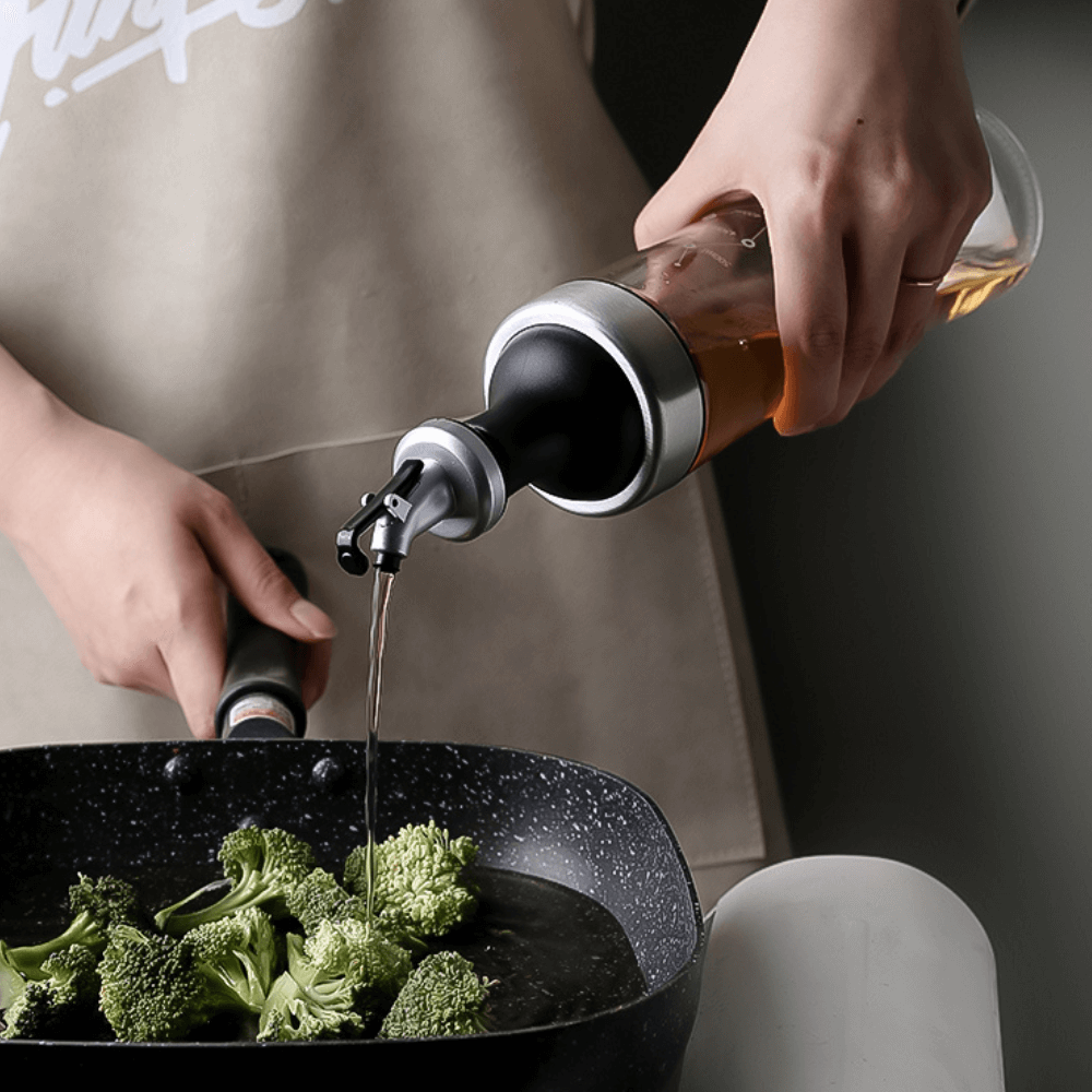 - The oil bottle has a large calibre bottle mouth, making it easy to store all kinds of liquids. With its sealing ring, it is more secure against leakage.