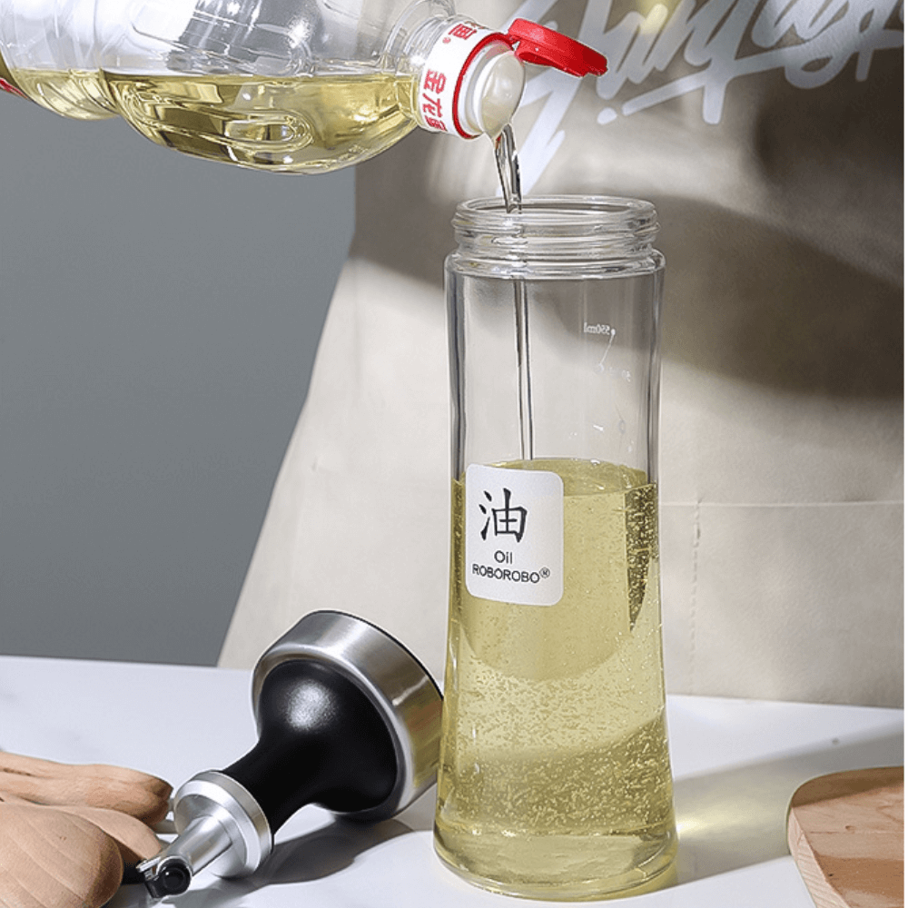 The Robo Alexander Oil Bottle is one-hand click to open worry-free cooking. It has a scientific opening and closing angle, so the oil will not be dripping. The large calibre bottle head easily stores all kinds of liquids. With its sealing ring, it is more secure against leakage.