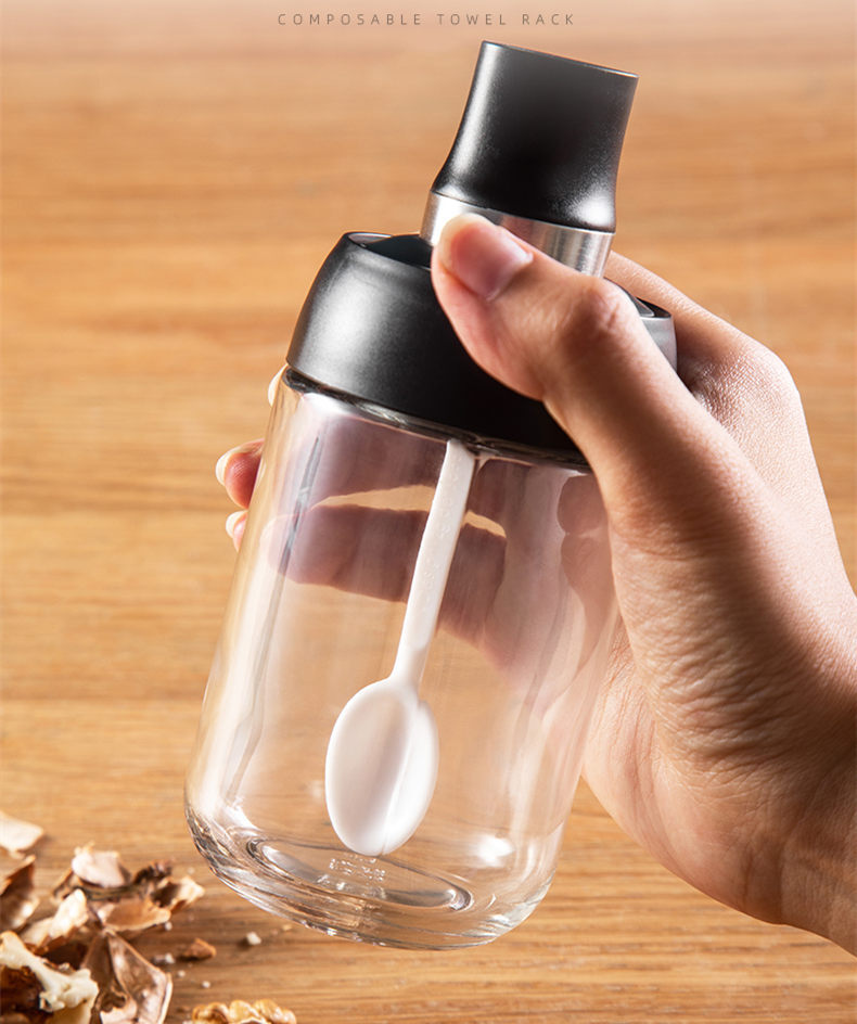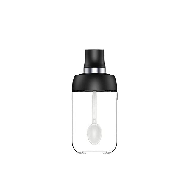 Robo Coco Spice Jug Seasoning Jar Spice Condiment Storage Container with Spoon 250ml - Black