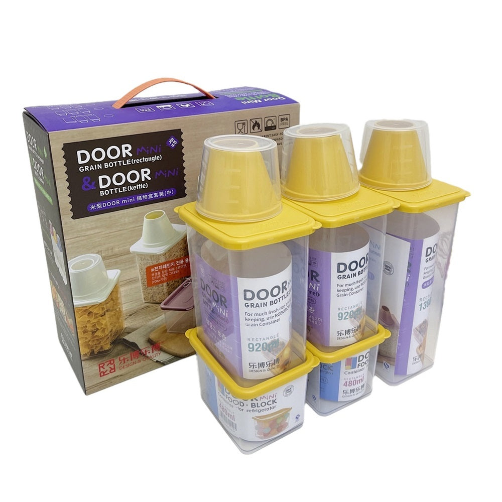 Robo Door Mini Food Grain Spice Storage Container 5pc Set - Yellow