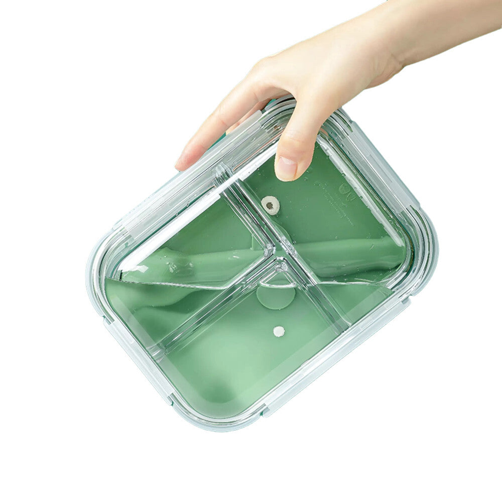 Robo Dubai Glass Lunch 3 Compartments Box Food Container with Spoon 1L White/Green