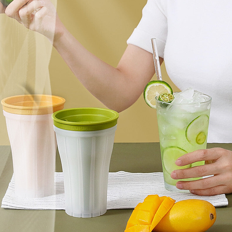 The unique ice making cup with a double layer construction allows you to get crushed ice and smoothies easily. This glass has everything you need and its recommended water level is more than enough to make two wonderful summer drinks or to provide crushed ice for your raw produce.