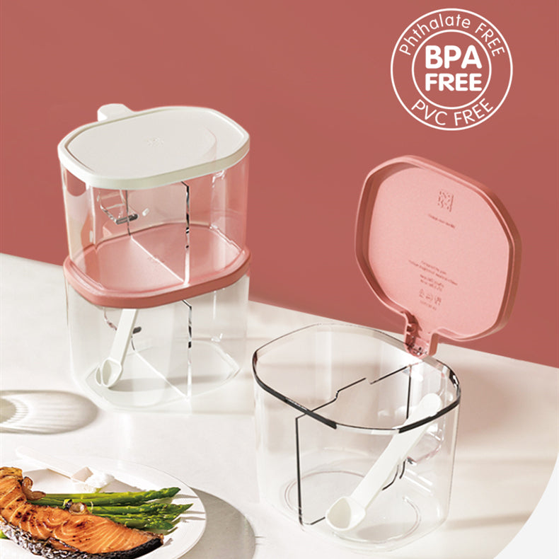The perfect seasoning jar to save kitchen space, keep your kitchen tidy and provide you with a great cooking experience. Equipped with two small spoons to help you estimate the exact amount of condiment to use.