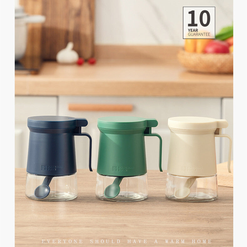 The new design concept of this seasoning bottle is aesthetically pleasing. It has a large capacity and comes with two 3g spoons for dosing spices. There are two opening angles of the lid. When opening it above forty-five degrees the lid can stand on its own without having to be opened repeatedly during use, and below forty-five degrees it closes automatically.