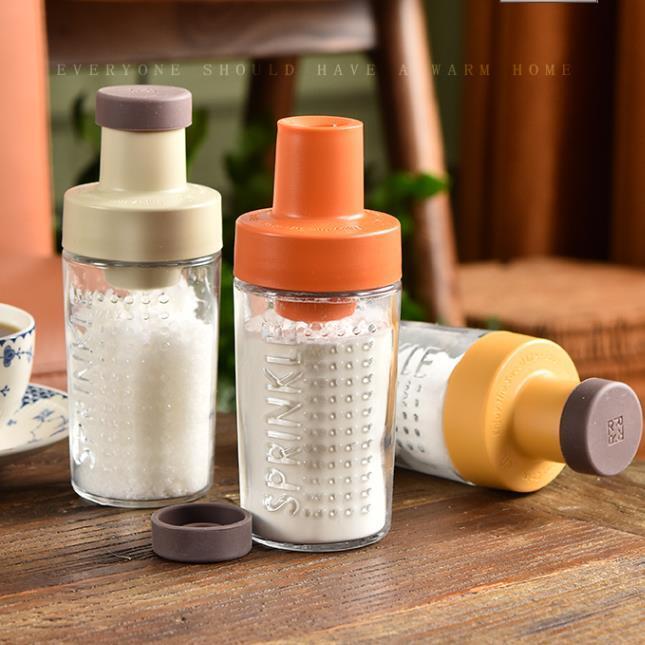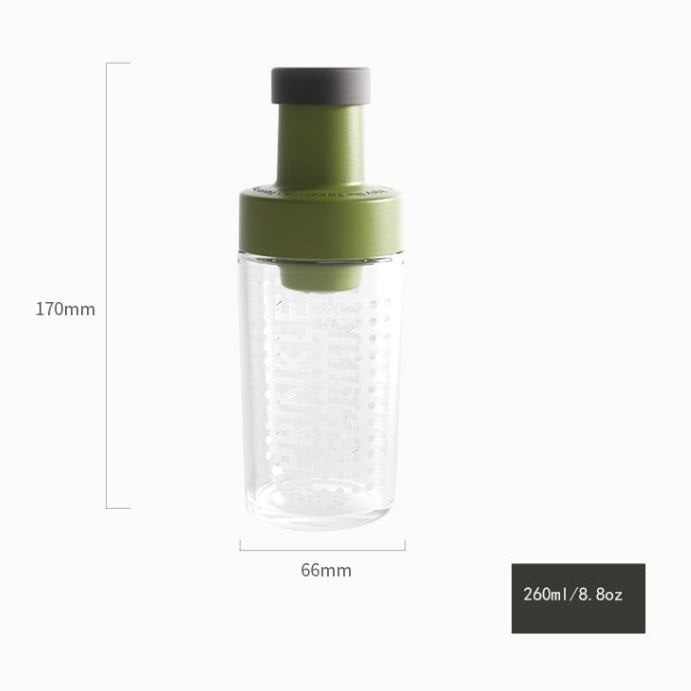 Delicate large capacity condiment bottle with porous outlet, made from food grade silicone and a non-heat resistant glass body. The unique moisture-proof design makes your kitchen life easier and more enjoyable.