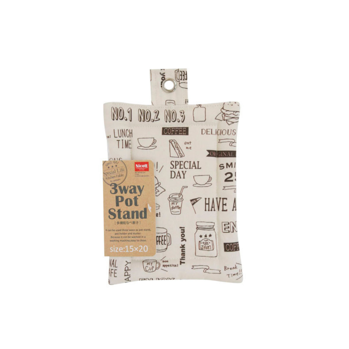 Versatile 3-way pot pad: lay flat, grip securely, wipe effortlessly. The waffle fabric is back for grip and quick cleaning. It is washable and doubles as a hot pad.