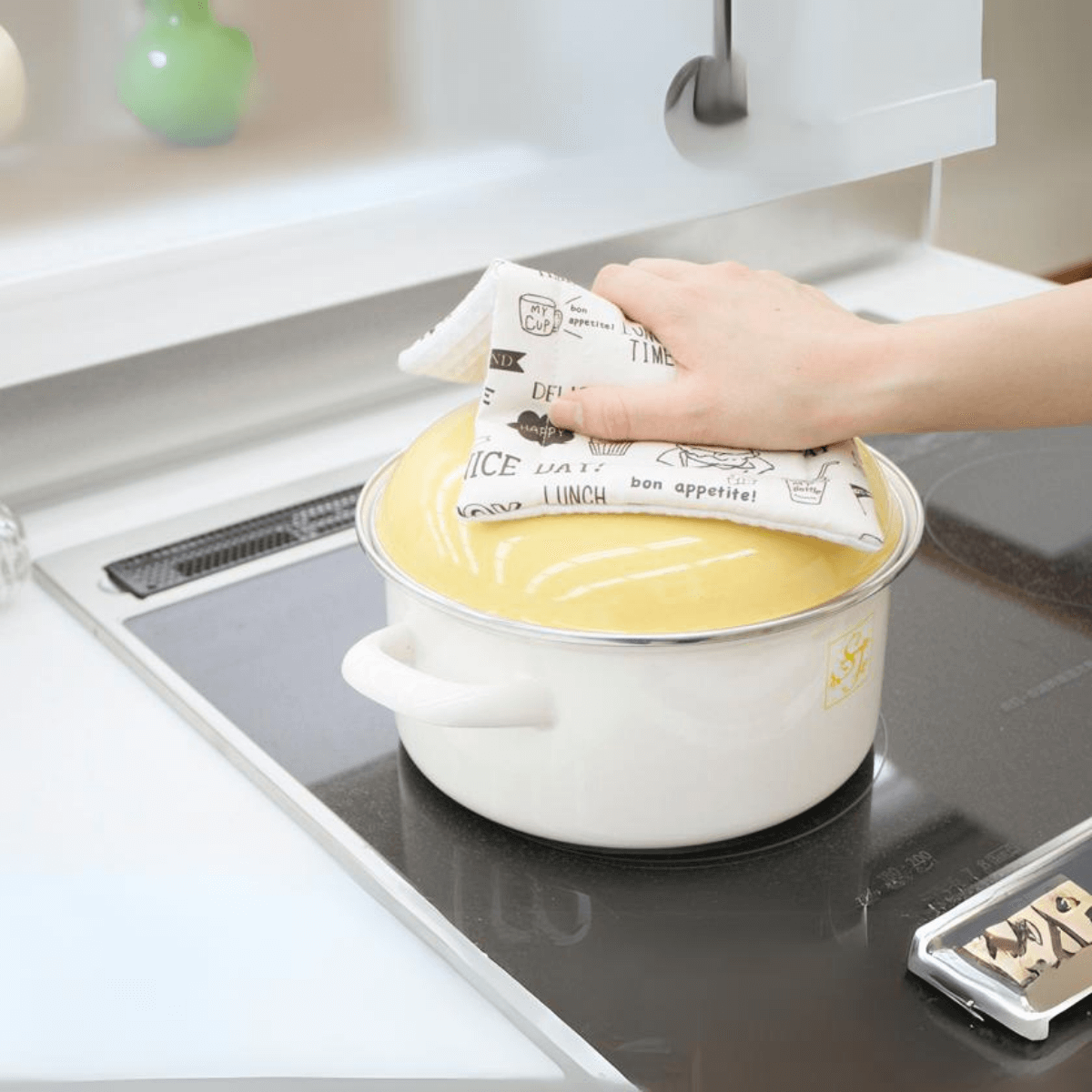- Enhanced Grip with Waffle Fabric: The waffle fabric back provides a secure grip on hot pans and facilitates quick and easy cleaning after use.