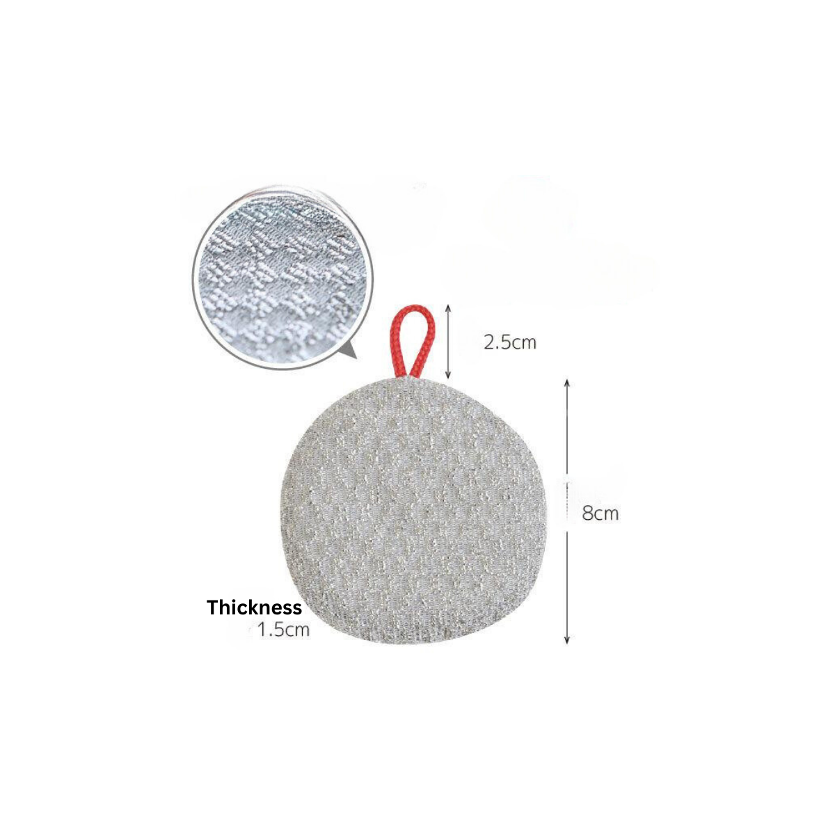 Efficiently clean skillets and pots with this round scrubber. The looped aluminium film removes stubborn spikes, which is recommended for scorching cookware. Includes hanging string for easy storage.
