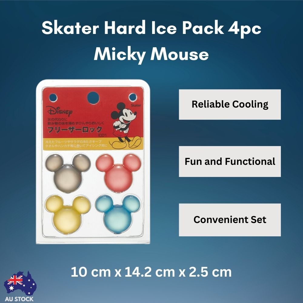 Keep snacks cool with Skater Hard Mickey Mouse Ice Packs, perfect for lunch boxes or picnics. They're 3.6 x 2.6 x 2.5 cm each, featuring Disney's Mickey Mouse and sealed with purified water in durable plastic for reliability.