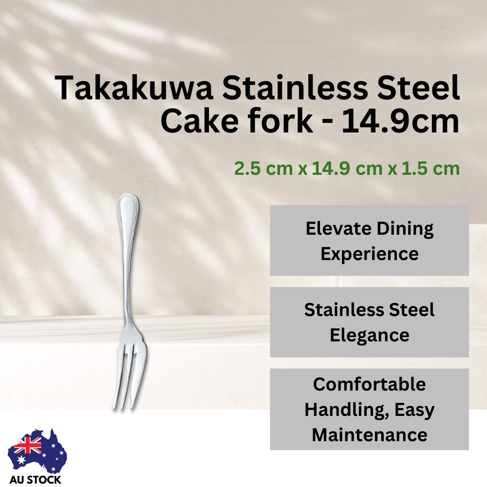Introducing the Takakuwa Stainless Steel Cake Fork - 14.9cm, your perfect partner for indulging in delectable cake creations with finesse and style. Elevate your dessert experience with this meticulously crafted stainless steel cake fork, designed to add a touch of sophistication to every slice. Crafted from premium stainless steel, it exudes durability while radiating modern elegance, enhancing the ambience of any dessert table or afternoon tea gathering. With its compact size and expertly balanced weight, it offers comfortable handling, allowing you to enjoy every bite of your favourite cakes with ease. From rich chocolate cakes to light chiffon delights, this versatile cake fork is the ultimate accessory for dessert connoisseurs. Effortlessly easy to clean and maintain, it promises convenience without compromising on elegance. Get ready to elevate your cake indulgence with the Takakuwa Stainless Steel Cake Fork - 14.9cm.