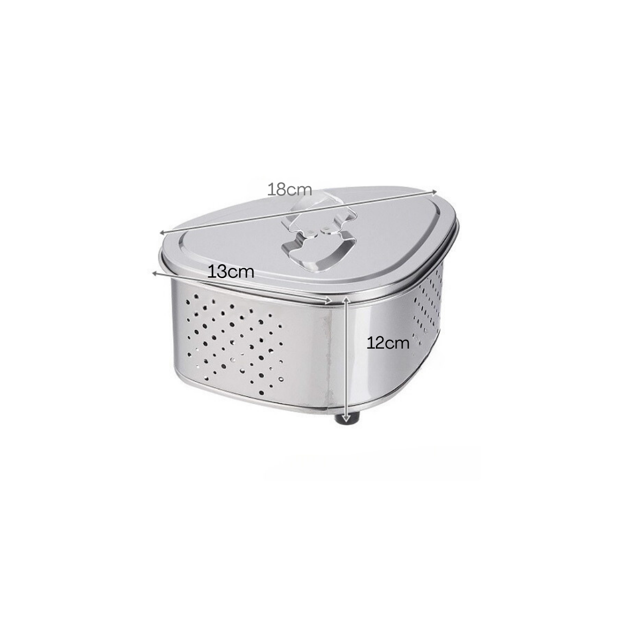 Antibacterial Stainless Steel Triangle Corner with Lid for hygienic waste disposal. The lid minimizes odours and hooks conveniently during use. Easy-to-clean stainless steel.