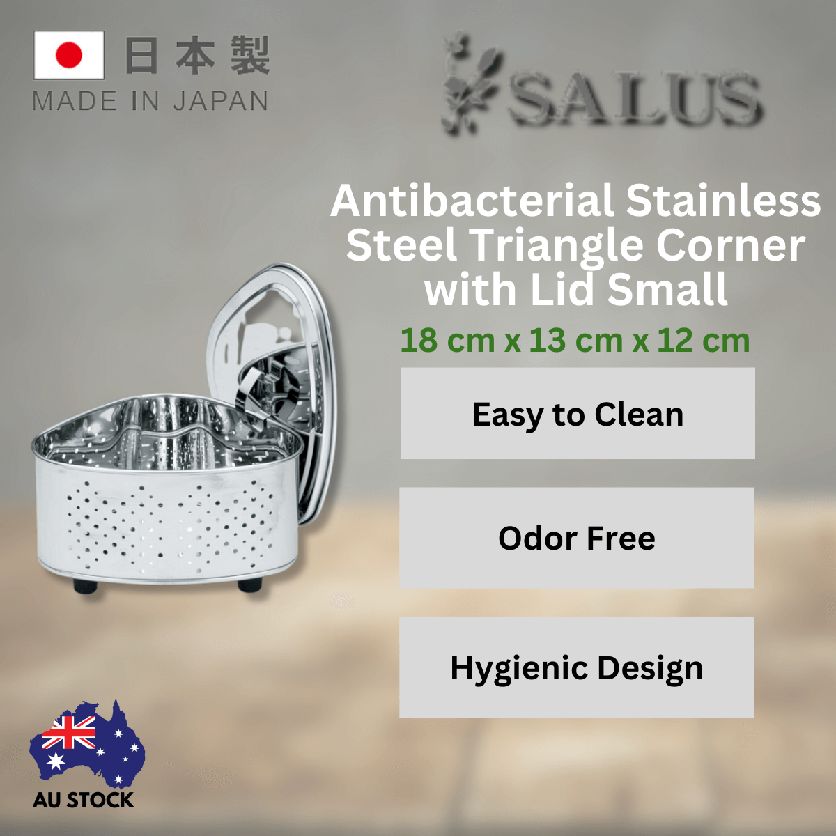Tamahashi Antibacterial Stainless Steel Triangle Corner with Lid Small