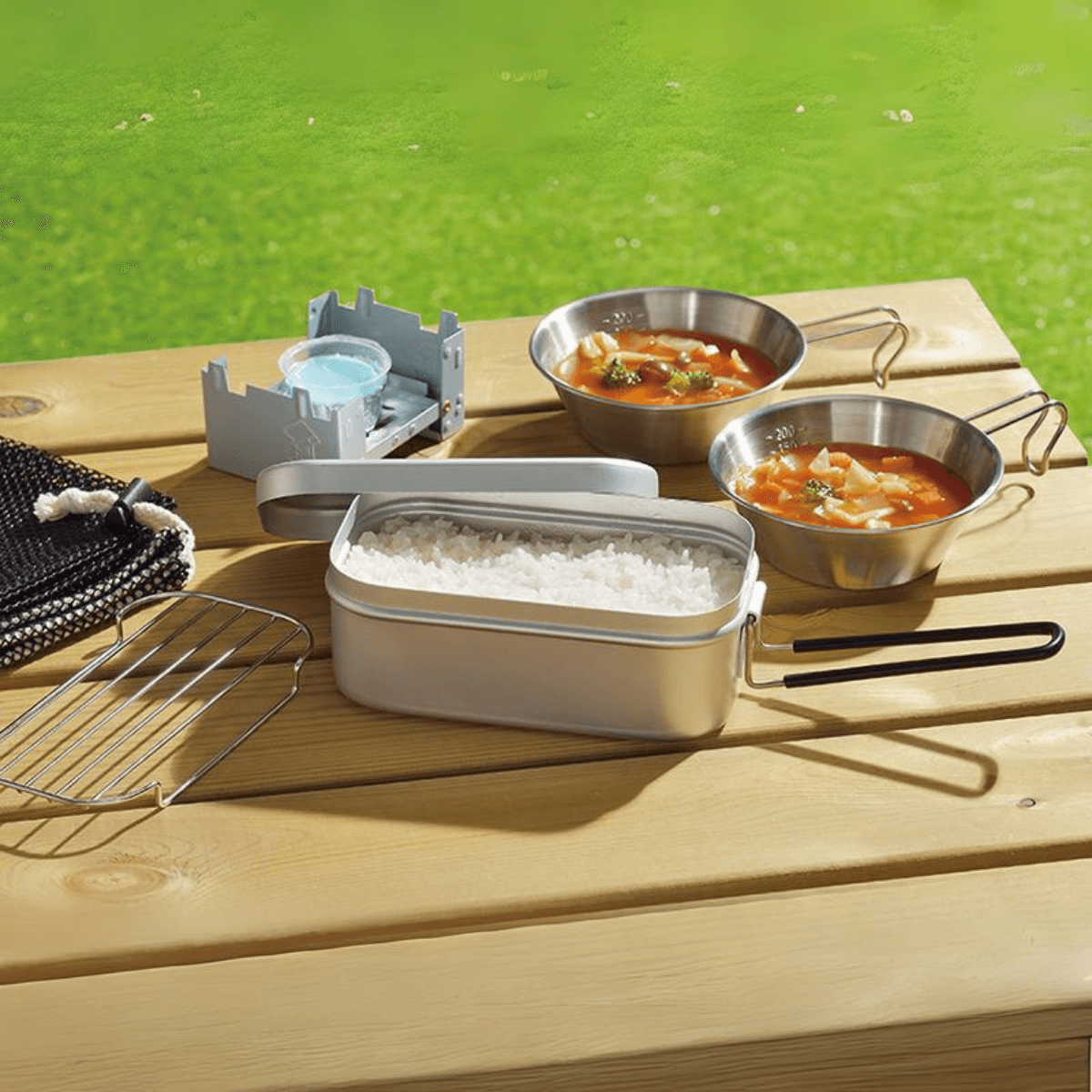 - Lightweight Aluminum Mestin: Easy to carry, featuring foldable handles for convenient storage during outdoor cooking adventures.