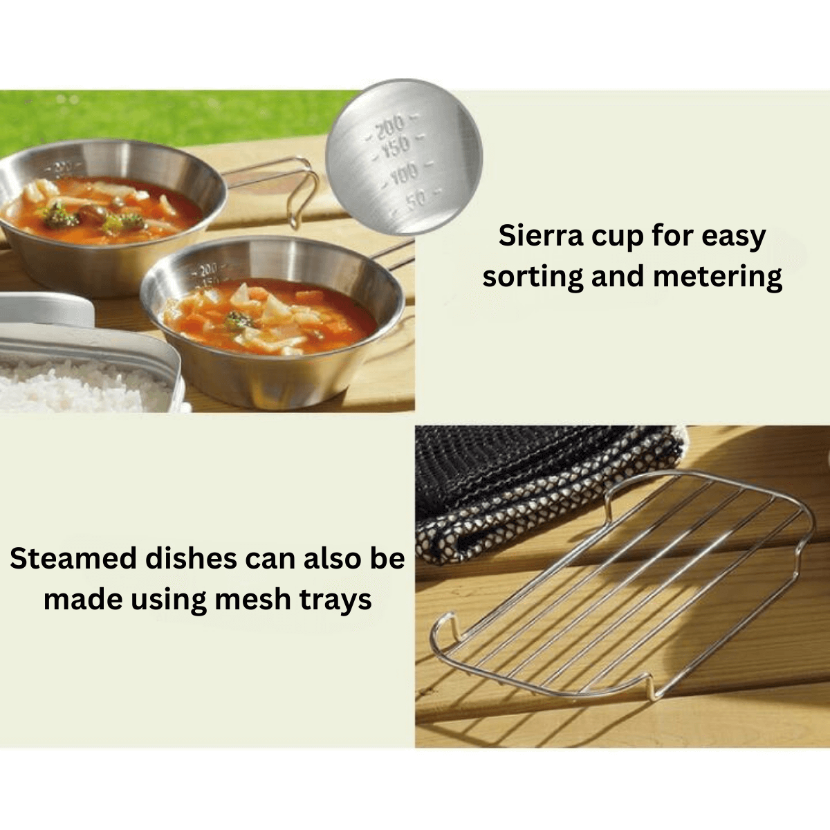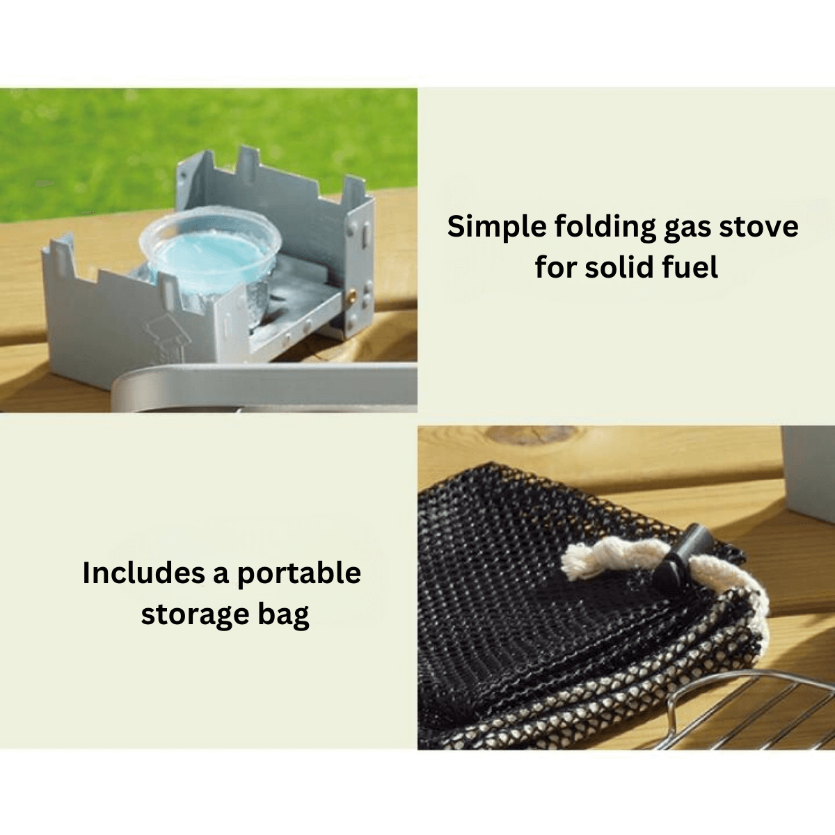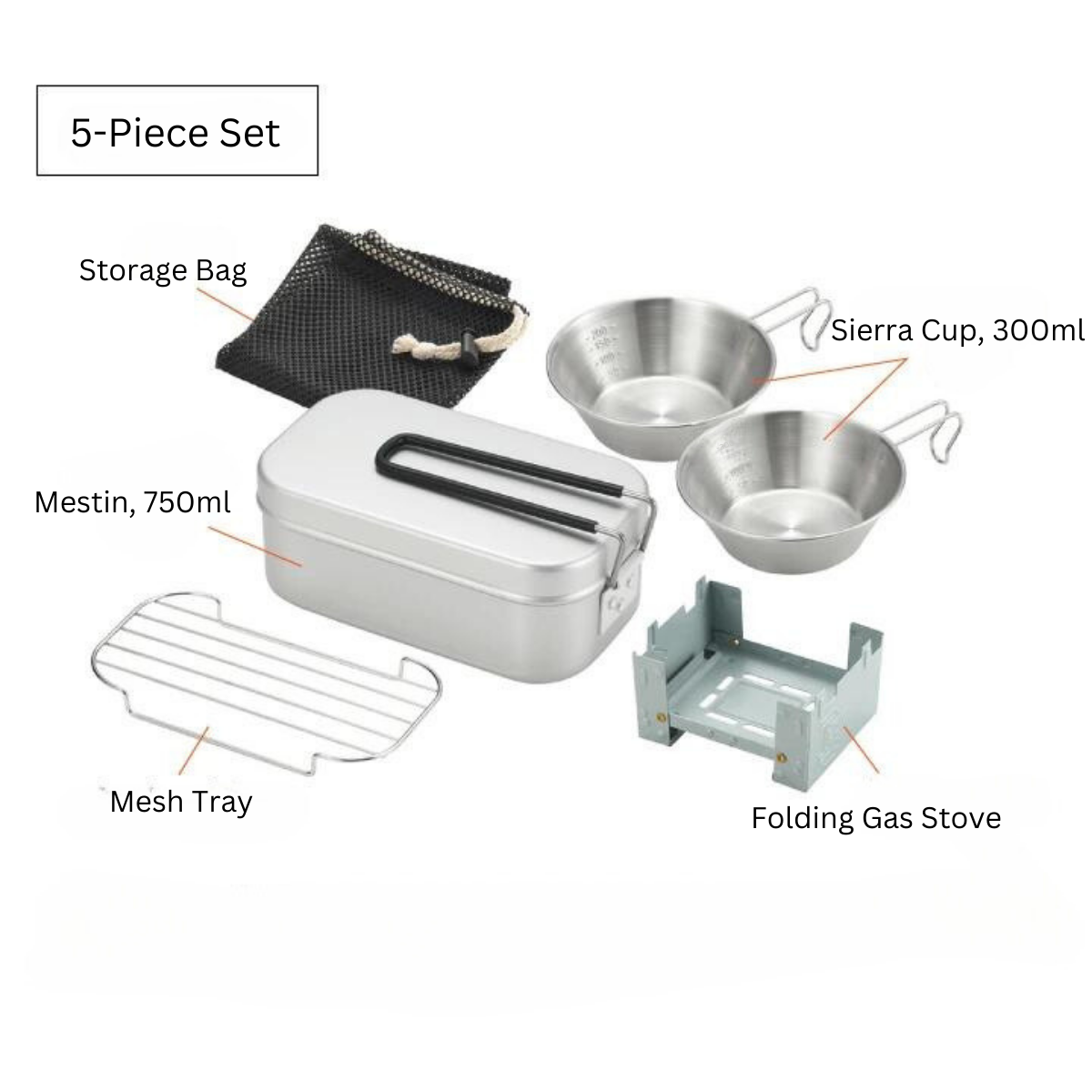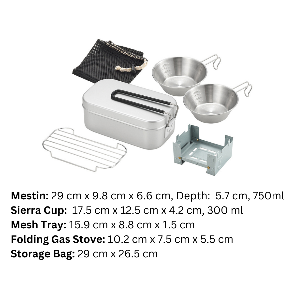 - Product Included: 1 x Mestin, 2 x Sierra Cups, 1 x Mesh Tray, 1 x Folding Gas Stove, 1 x Storage Bag.