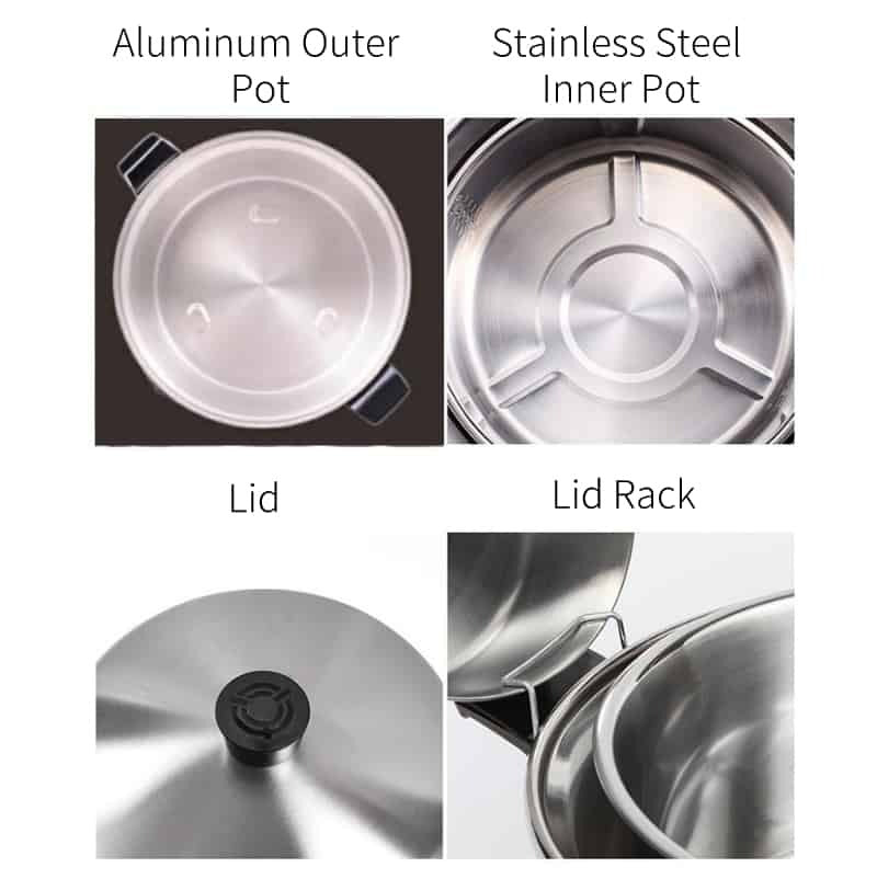 Durable 18/8 (food grade 304) stainless steel inner pot, it's easy to clean and retains its lustre over time. We can guarantee you its durability. The indirect heating technology heats and steams the entire pot, so dishes are tastier and cooked evenly. Guest coming over, you would be in love with the food cooked in this cooker.