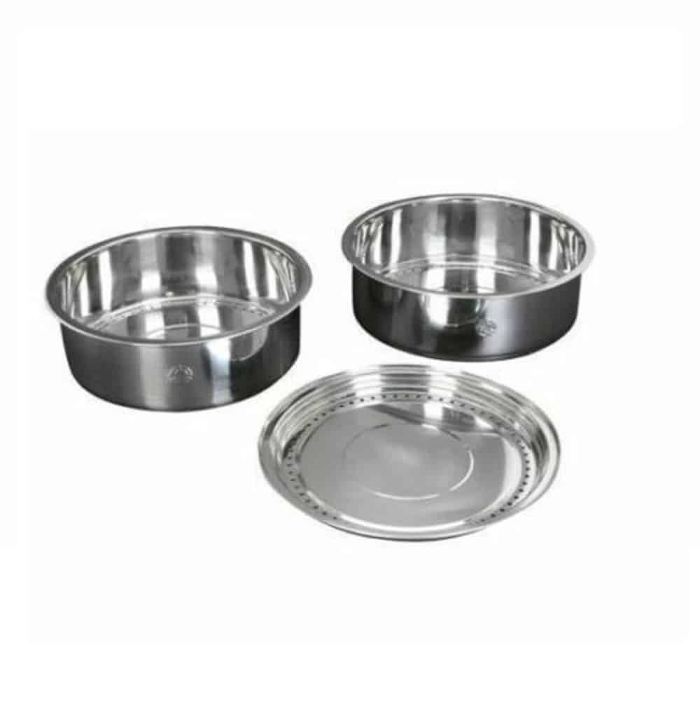 - The set comes with one set of two-layer stainless steel trays and one stainless steel lid