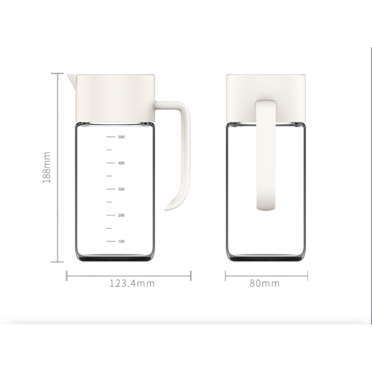 The Thinkinge Easy Open Self-Locking Oil Bottle features a spring-loaded snap-on cap design for easy access to the bottle's contents. No more struggling with stubborn caps. The self-locking cap is designed with a gravity flip cap that opens when tilted and closes when standing upright, ensuring easy one-handed pouring of oil without the need for thumb pressure. The leak-proof and drip-proof spout prevents water spills and keeps the kettle clean. This kettle has a large diameter and 18.5 oz capacity to minimize the risk of spillage when filled with liquid. Made from durable borosilicate glass, it is heat-resistant and dishwasher-safe, making cleanup a breeze. It is suitable for holding a wide range of cooking oils and features an automatic reflux function and non-stick design.