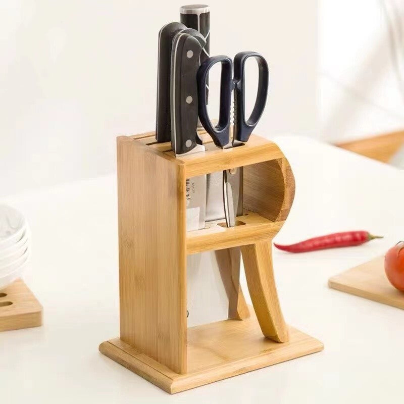 THRJ R-Shape Bamboo Knife Holder Rack Only Kitchen Storage 5193