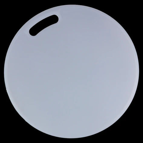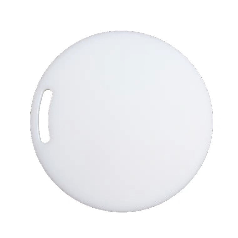 This round PE white chopping board is odorless, tasteless, non-toxic white granules or powder with a maximum operating temperature of 100°C. Excellent heat resistance, cold resistance, abrasion resistance, and chemical stability. Easy to clean, no residue. One-piece molding, no splicing, no damage from cutting.