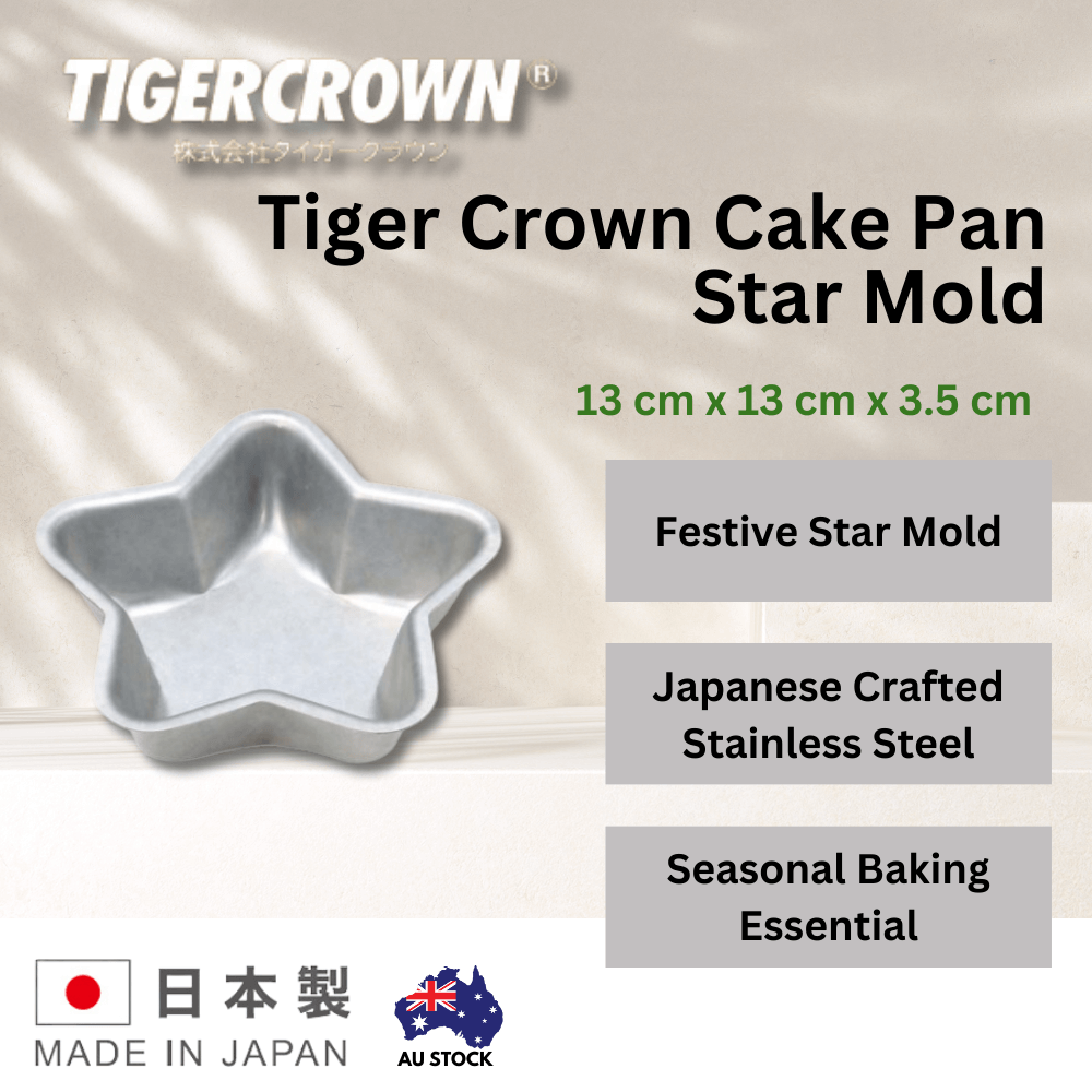 Introducing the Tiger Crown Cake Pan Star Mold - a testament to Japanese innovation in the realm of baking perfection. Crafted with precision in Japan, this star-shaped pan revolutionizes your baking endeavours with its thoughtful design and superior materials. Say goodbye to the frustration of sticky cakes and hello to effortless demolding, thanks to the removable bottom and adjustable side spring. Constructed from a blend of steel and aluminum plating, this pan ensures even heat distribution for perfectly baked treats every time. Coated with a durable fluorine resin, cleaning becomes a breeze, while the stainless steel clip adds durability and convenience to its design. Elevate your baking game and achieve flawlessly shaped star cakes with the Tiger Crown Cake Pan Star Mold.