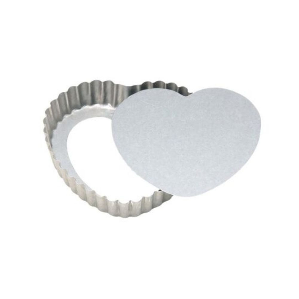 Bake heart-shaped cakes effortlessly with the Tiger Crown 2359 Tart Mold. Crafted from durable alloy steel with aluminium plating, it features a removable bottom for easy release and compact dimensions of 110 x 110 x 20 mm.